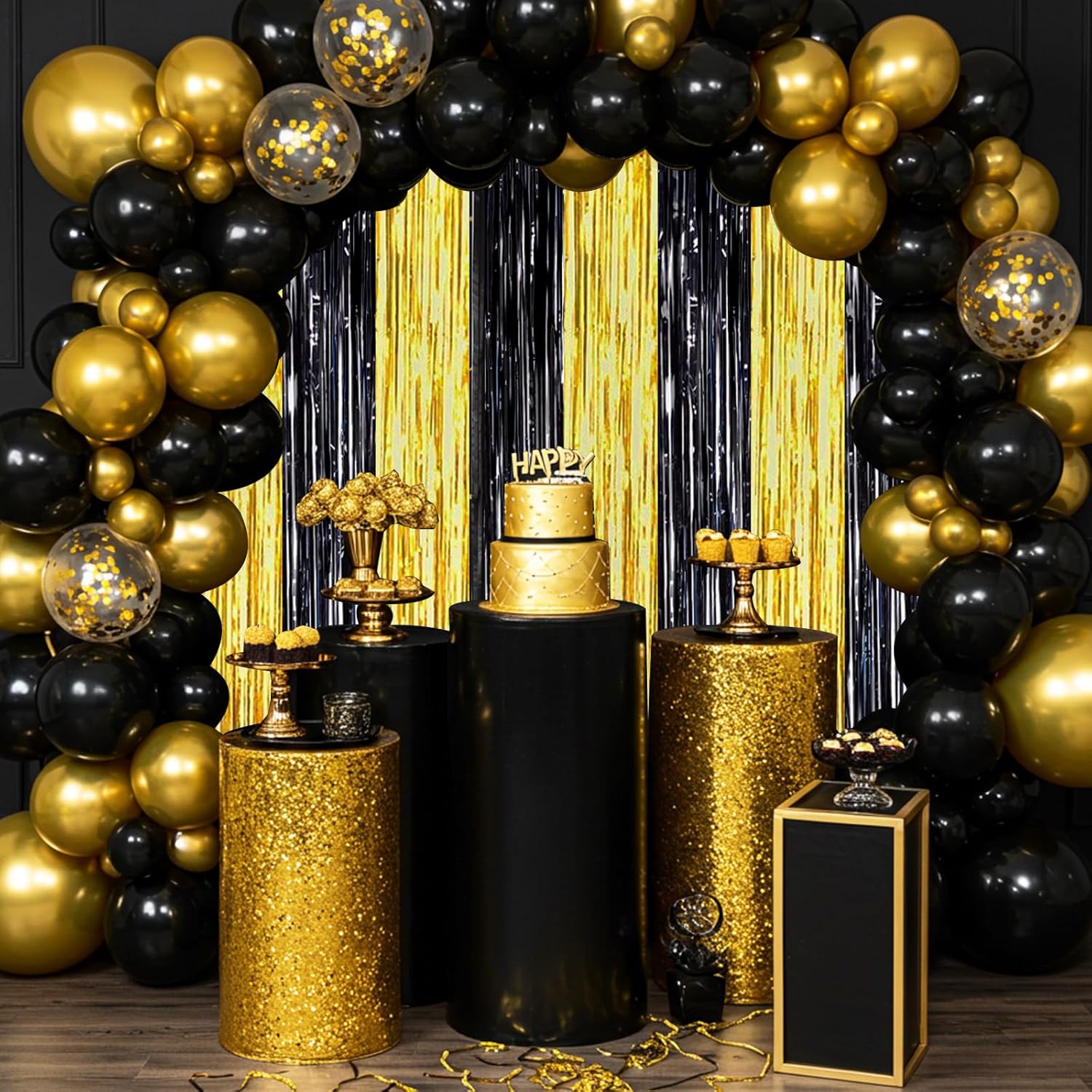 BEISHIDA 2Pcs Black Gold Door Streamers Congrats Grade 2025 Decoration Backdrop Foil Fringe Tinsel Party Streamers Curtains Backdrops Birthday Graduation New Year Party Decoations(3.28 ft x 6.56 ft)