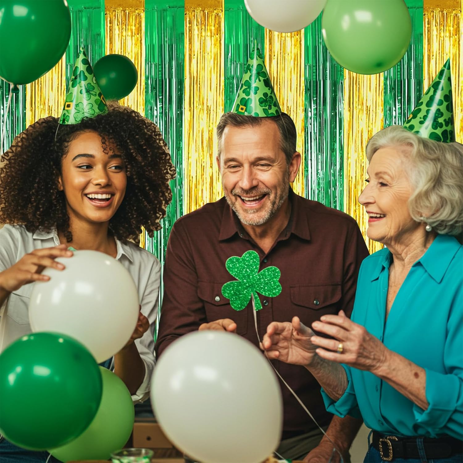 BEISHIDA 2Pcs Green Gold Door Streamers Congrats Grade 2025 Decoration Backdrop Foil Fringe Tinsel Party Streamers Curtains Backdrops for Birthday 2025 Graduation St Patrick's Day (3.28 ft x 6.56 ft)