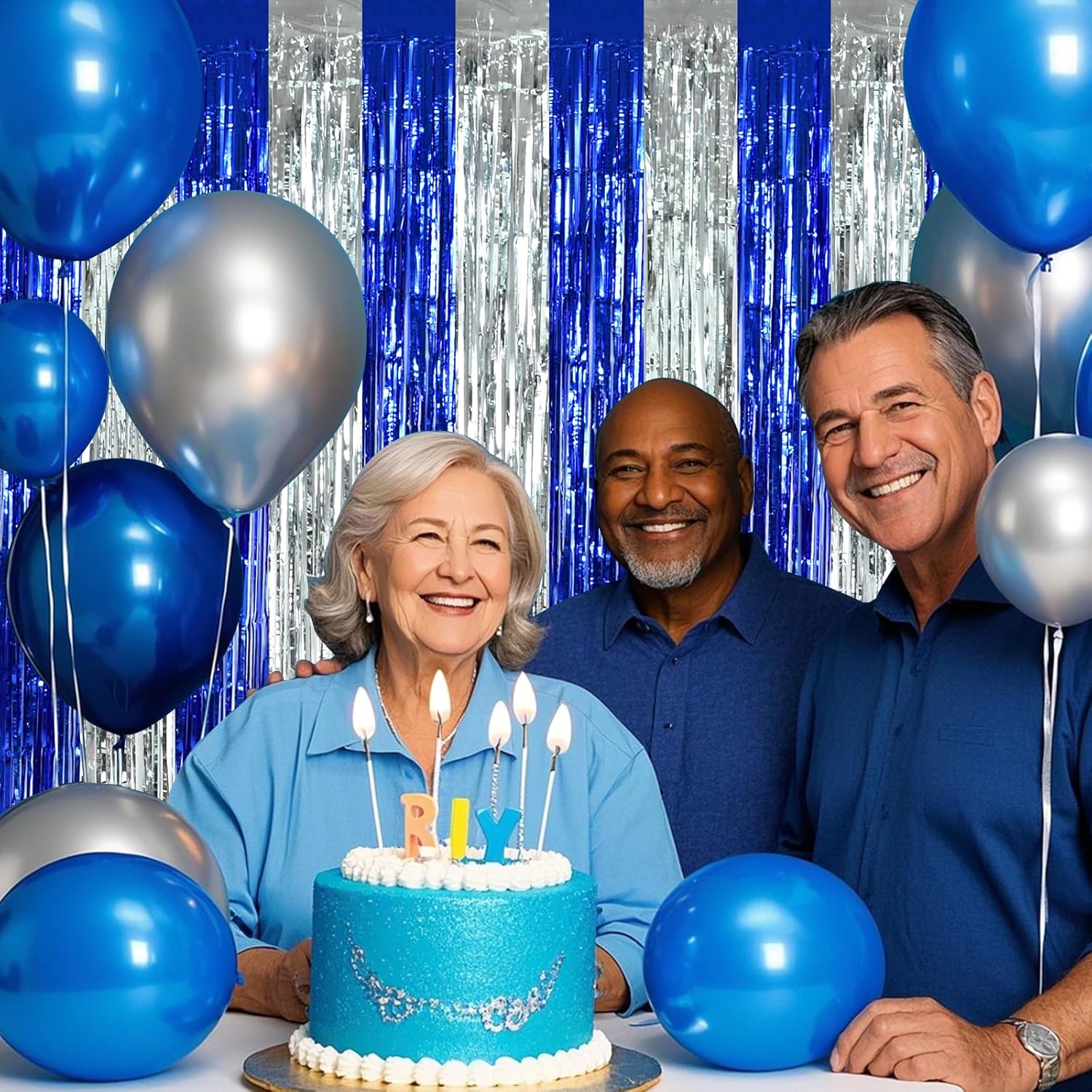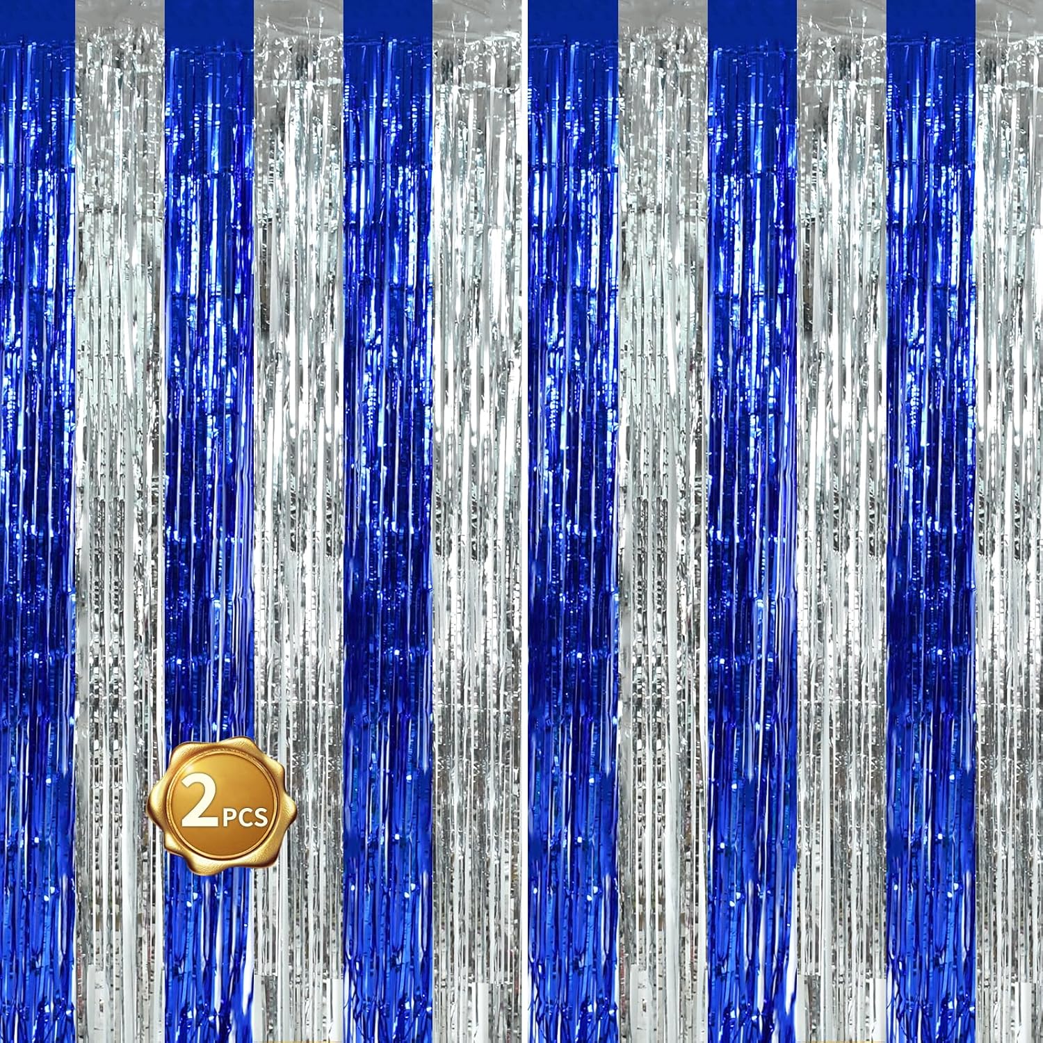 BEISHIDA 2Pcs Blue Silver Door Streamers Congrats Grade 2025 Decoration Backdrop Foil Fringe Tinsel Party Streamers Curtains for Birthday Graduation Winter Party Decoations (3.28 ft x 6.56 ft)