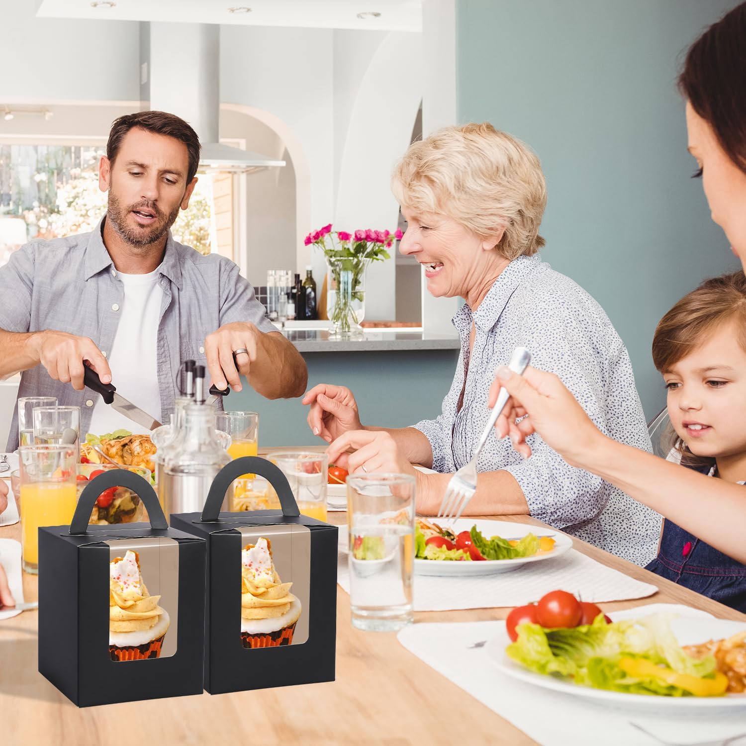 JCD Black Cupcake Boxes Individual 120 Packs Cupcake Holders Disposable Single Cupcake Boxes with Window and Insert Muffins Cupcake Carriers Holder Cookie, Dessert, Donuts, Cupcakes (Black/120Pcs)