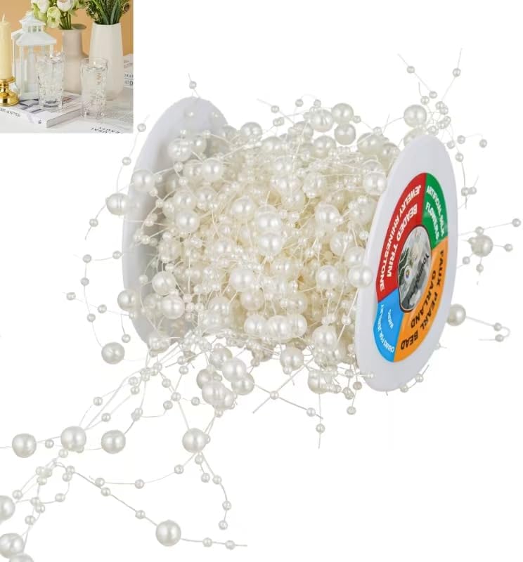 • Length: 13 feet (4 meters) floating candle centerpieces of continuous pearls on a spool for easy cutting and styling