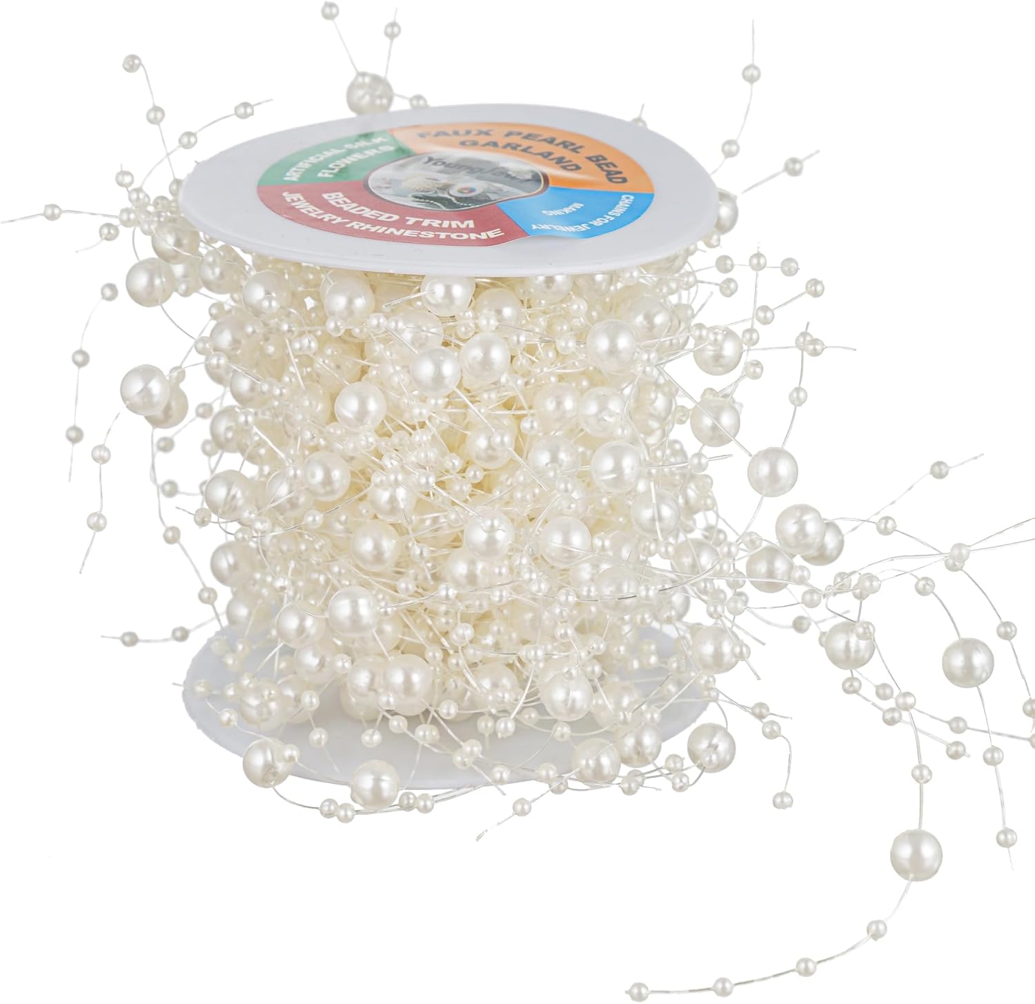 13Feet Pearl String Spool Roll for Floating Candles Faux Pearls Strands Garland for Vase Filler Wedding Centerpiece Christmas Table Decor (Ivory)