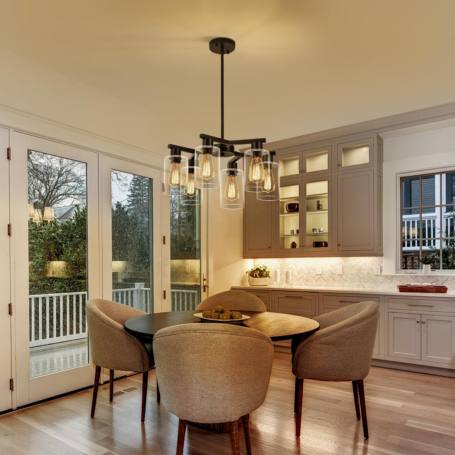 • 【Bulb Requirement】This dining room chandelier features 6*E26 bases that are compatible with various bulb types, such as incandescent, LED, CFL, and halogen bulbs (Bulbs NOT Included). the dining table chandelier also compatible with dimmer, you can use a dimmable bulb to create a warm and relaxed atmosphere (Dimmer switch need to buy separately). The 6-lights design doubles the brightness and casts a softer and more abundant light, adding to your home!