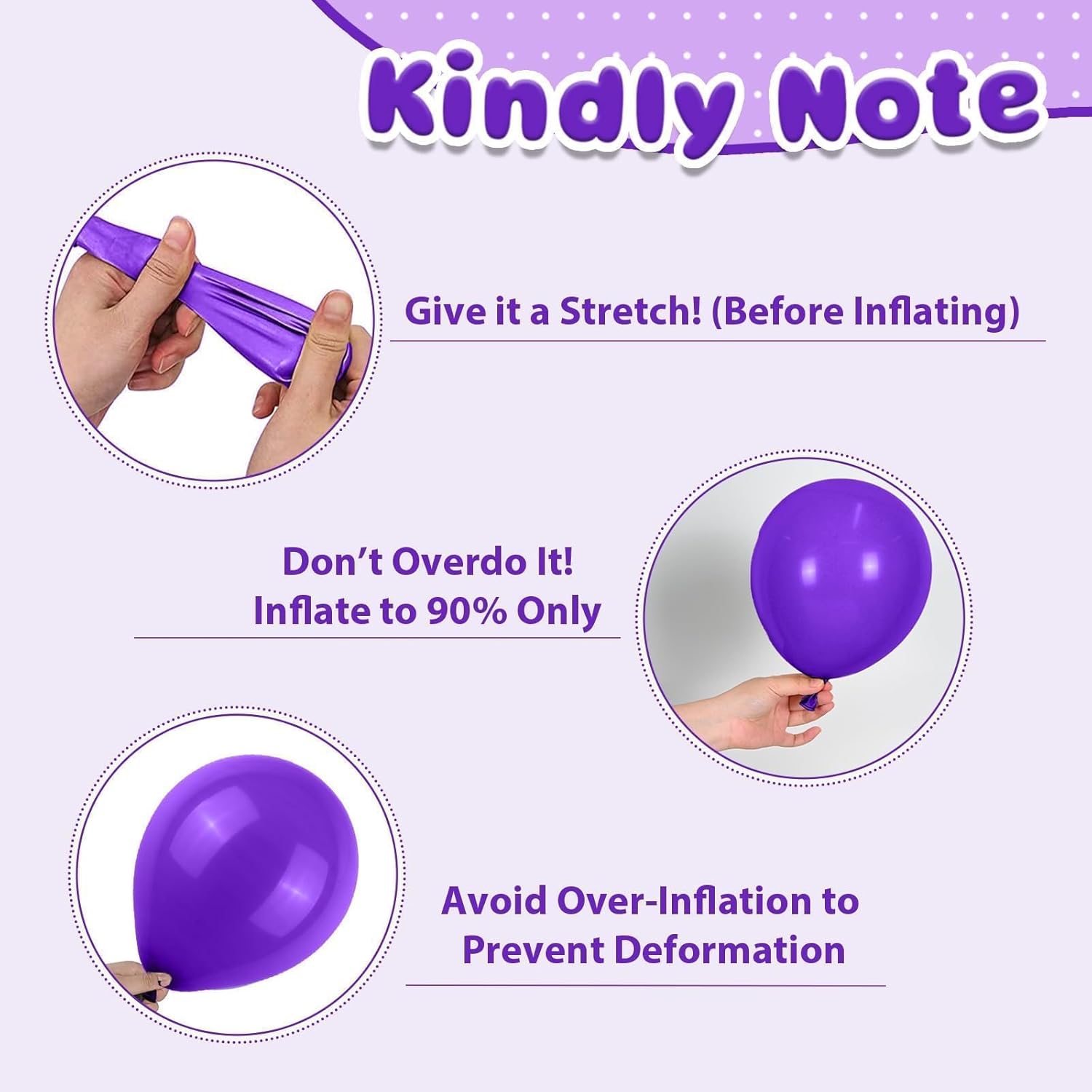 • Premium Quality Balloons: These metallic purple balloons are crafted from premium latex, offering excellent elasticity and durability. they can be filled with either helium or air, and when tied securely, they'll stay inflated for several days! With no strong odors, they are safe for children. With their vibrant colors, they are the ideal choice for adding a fun, colorful touch to any party or event.