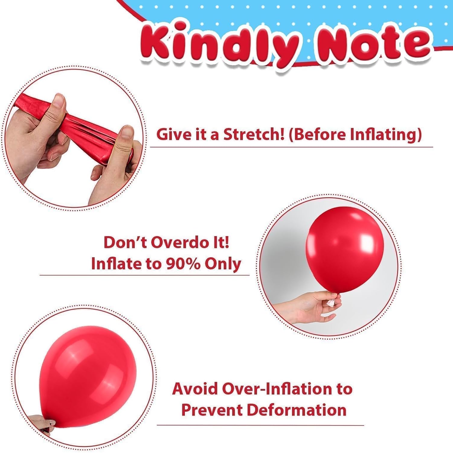 • Party-Ready Tips: Please be careful not to overfill the balloon to avoid bursting,away from sharp objects and direct sunlight to prevent damage. Please note that it is normal for 2-3 balloons out of the all to have some damage or small holes. If you have any questions or need assistance, please don't hesitate let us know.We will help you within 24 hours.