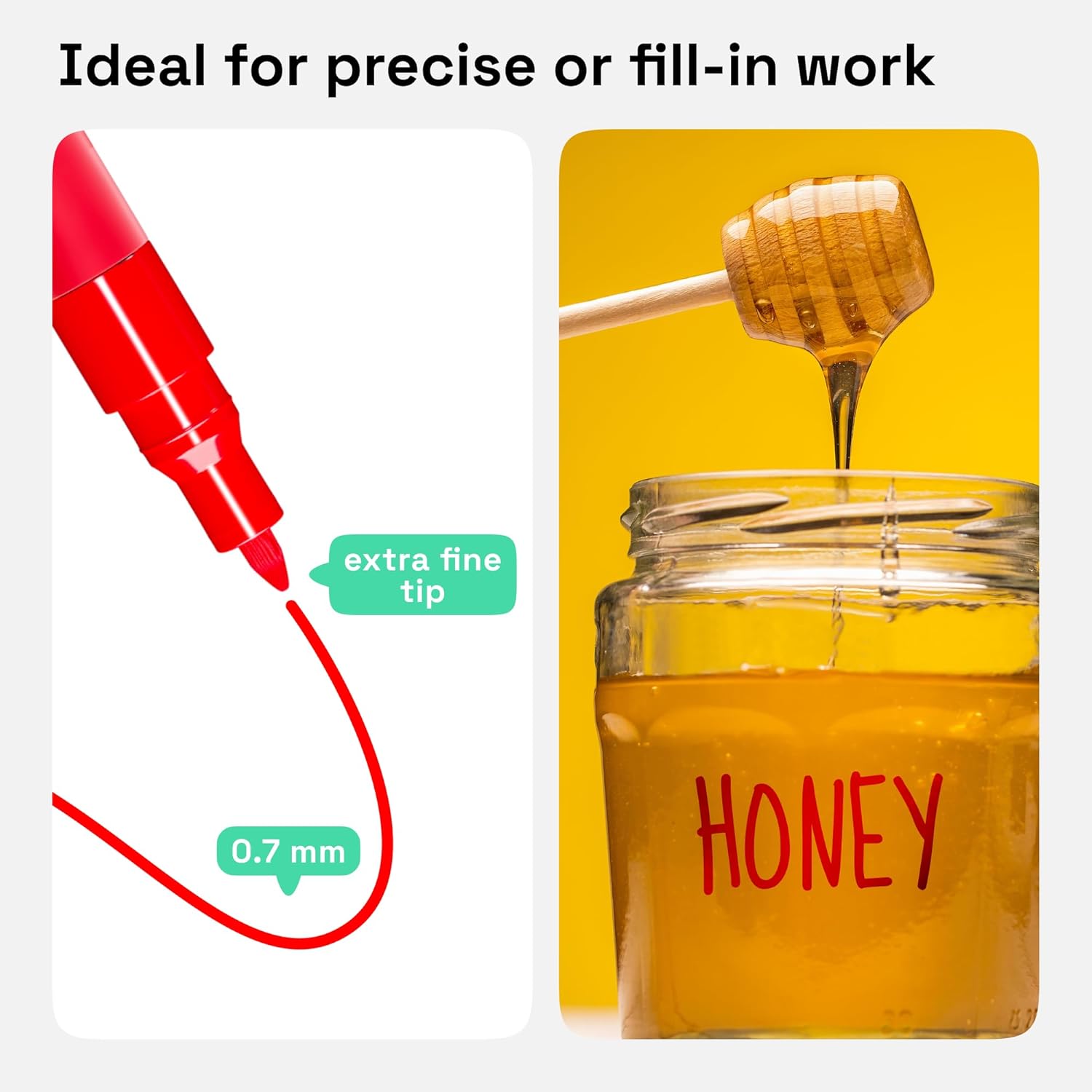 • Extra-Fine Tip: The red oil-based paint marker features a durable 0.7mm extra-fine tip for precise detailing. Great for fine line work, small lettering, rock painting, DIY decorations, and custom designs for Christmas, birthdays, weddings, or any special event.