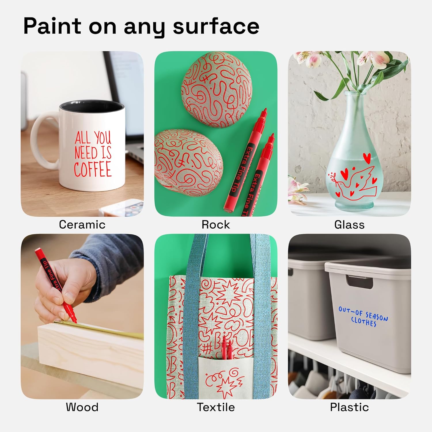 • Works on Multiple Surfaces: Use red oil paint pens on glass, plastic, metal, fabric, leather, wood, vinyl, stone, ceramic, or epoxy resin. Each red marker is water-resistant and long-lasting, making them ideal for both indoor and outdoor projects.