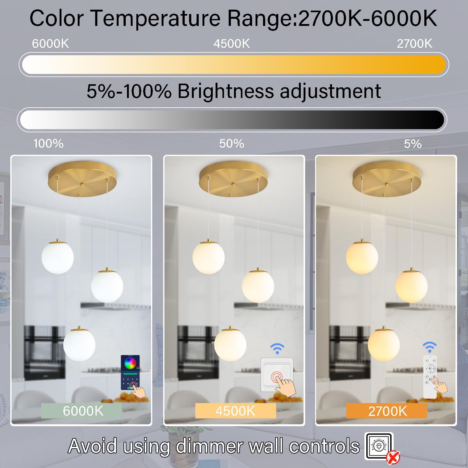 • 【Smart LED Chandelier 】It is equipped with a remote control and APP control for seamless dimming between warm white (2700K) and cold white (6000K), as well as adjustable brightness ranging from 5 to 100 percent.