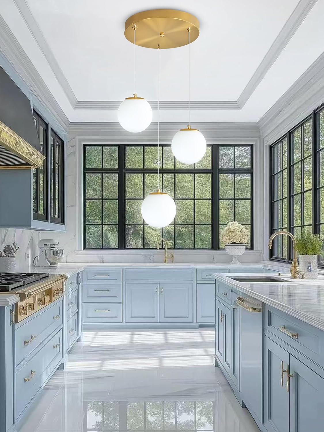 3-Lights Globe Glass Pendant Light Modern Gold White Globe Glass Chandelier Mid Century Chandelier Hanging Fixture for Kitchen Island Foyer Hallway Dining Room