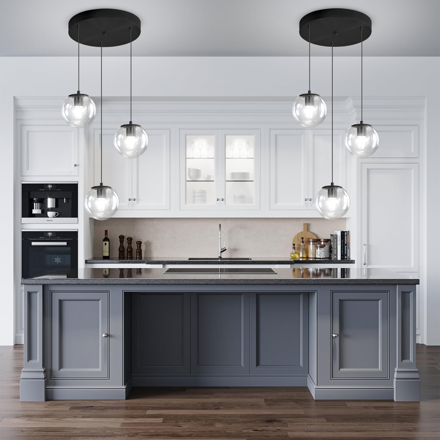 Globe Glass Pendant Light Modern Black Clear Globe Glass Chandelier Mid Century Chandelier 3-Light Hanging Fixture for Kitchen Island Foyer Hallway Dining Room
