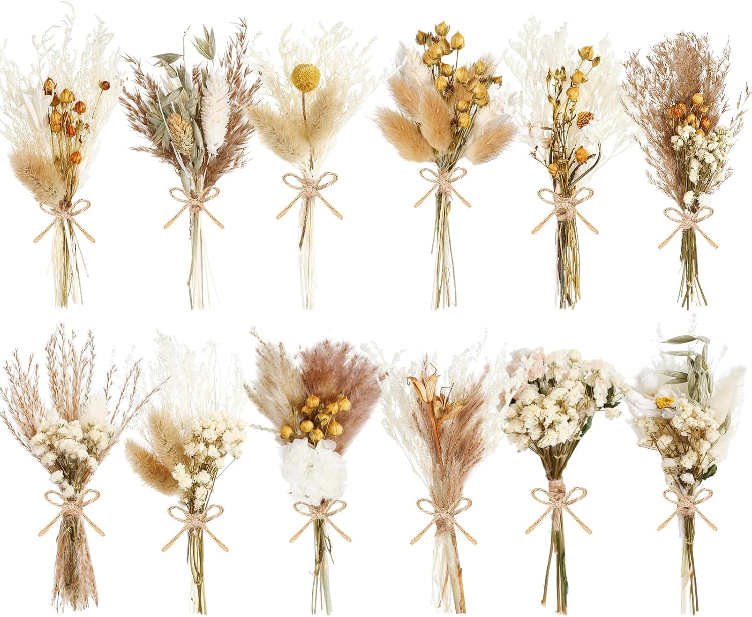 12/24 Pack Dried Flowers for Vase Various Mini Bouquet Dried Small Wildflowers Natural Real Flowers Bulk for Crafts DIY Wedding Decor (12, Plain Colour)
