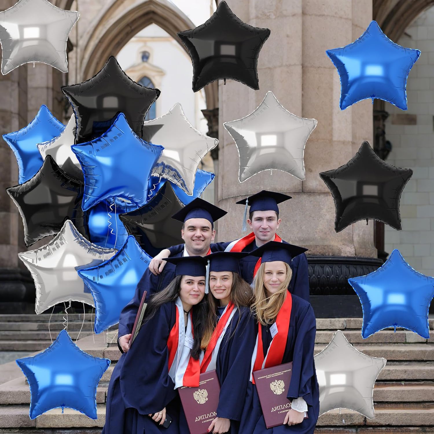 Blue Black Star Balloons Helium, 18Inch Silver and Blue Stars Shape Foil Balloon, 12Pcs Blue Pentagram Mylar Party Decoration for Boy Men Birthday Graduation Space Theme Eid Party Baby Shower Supplies
