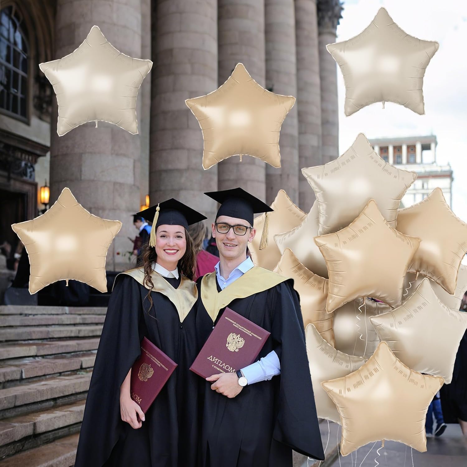 Cream Star Balloons, 18Inch Caramel Cream Stars Shape Foil Balloons, 12Pcs Beige Neutral Pentagram Foil Helium Balloon for Boho Party Girls Women Birthdays Wedding Bridal Baby Shower Party Decor