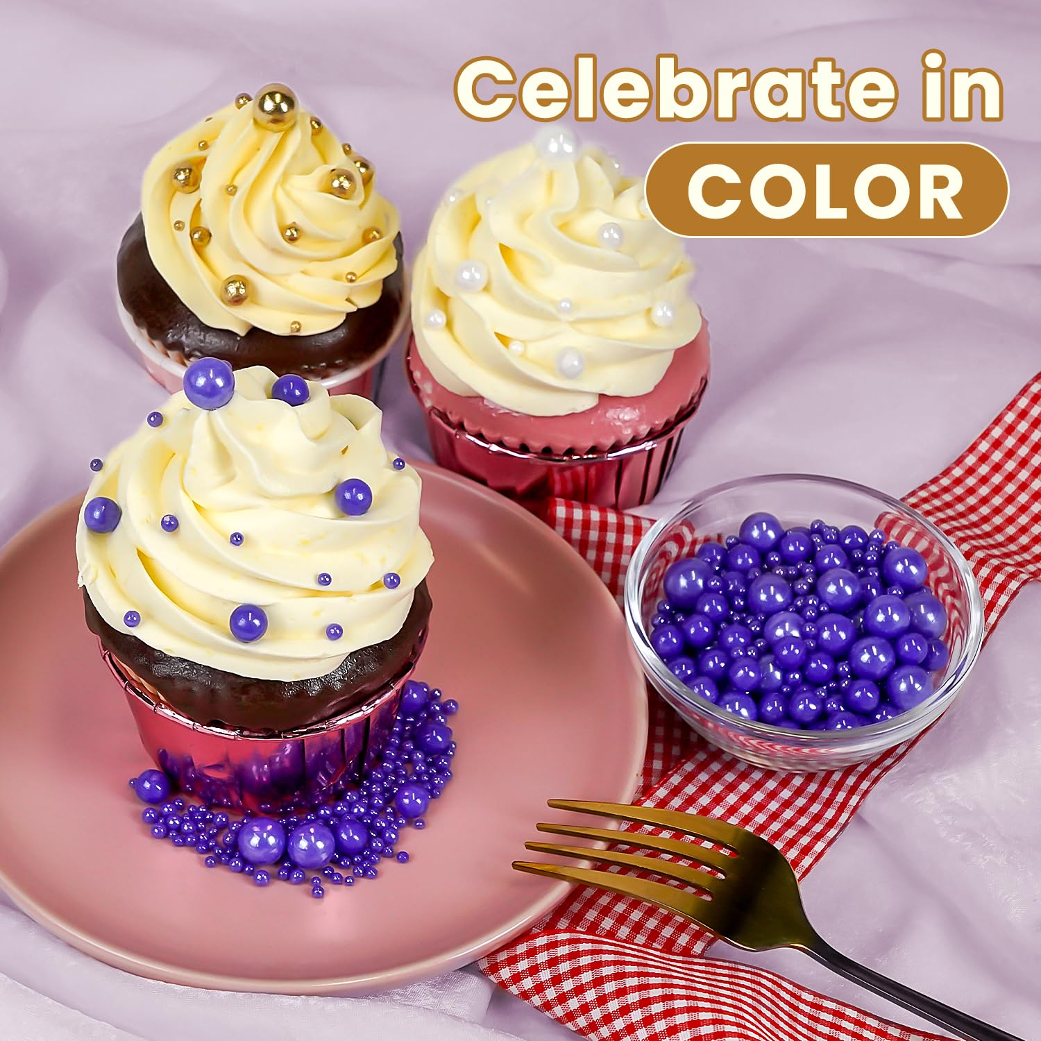 • Safe & Certified Pearls: Food-grade purple pearls sugar sprinkles made with non-GMO ingredients, 0% preservatives. Kosher/Halal-certified in facilities with no allergens (soy/nut/dairy). Tamper-proof sealed for safety.