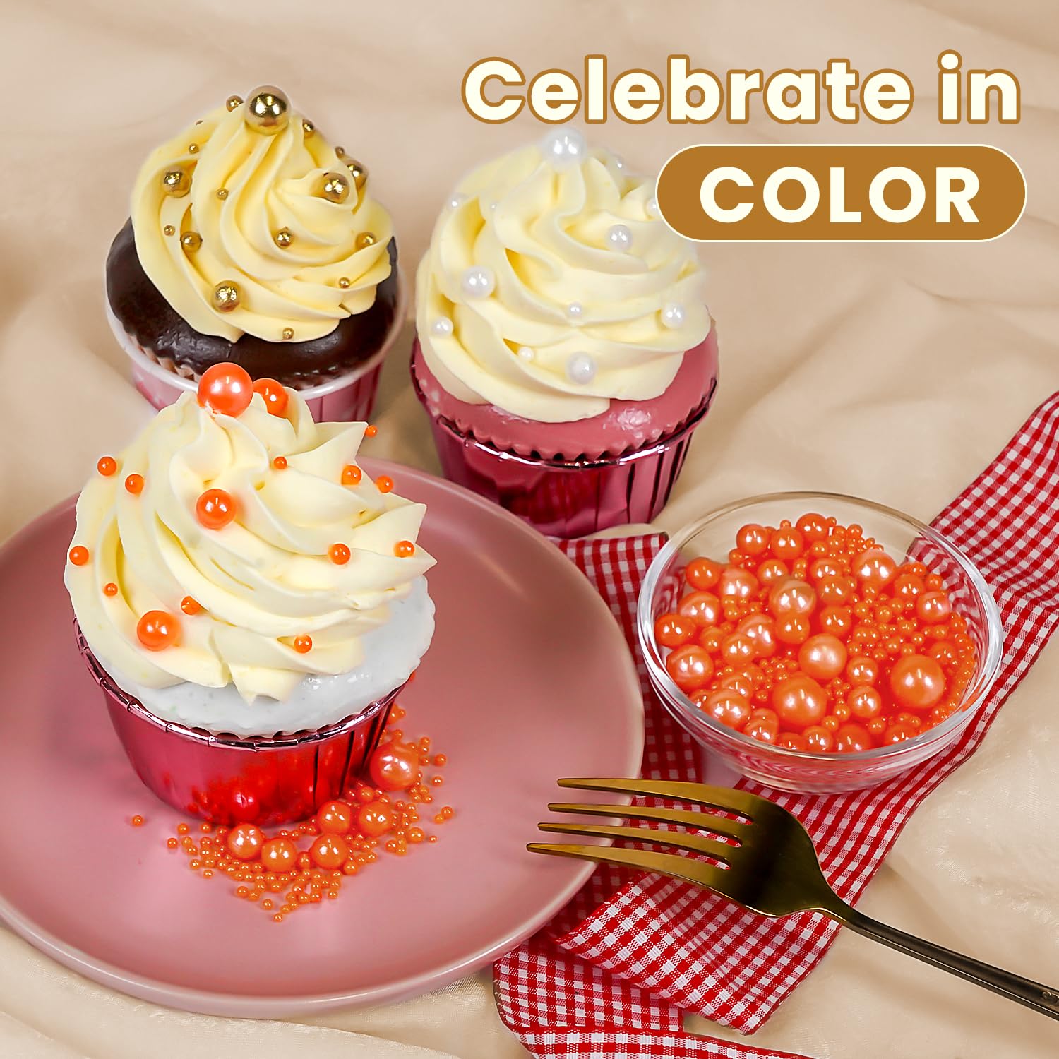 • Safe & Certified Pearls: Food-grade orange pearls sugar sprinkles made with non-GMO ingredients, 0% preservatives. Kosher/Halal-certified in facilities with no allergens (soy/nut/dairy). Tamper-proof sealed for safety.