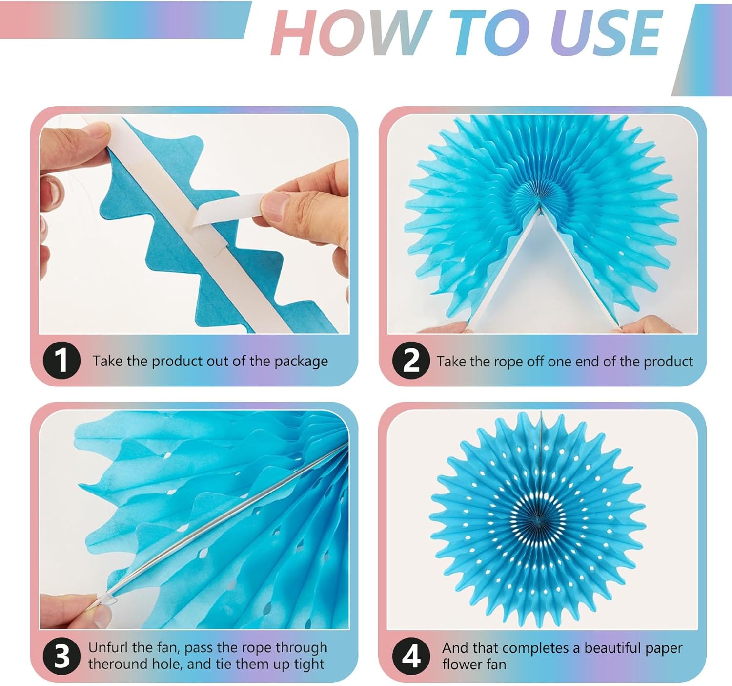 • 【Easy to Assemble】These hanging paper fans have a hanging string attached and a paper clip. Just unfold the paper flower fan and fix it with the rope of the paper flower fan, then you can hang it to your favorite place and decorate your party perfectly in a few minutes.