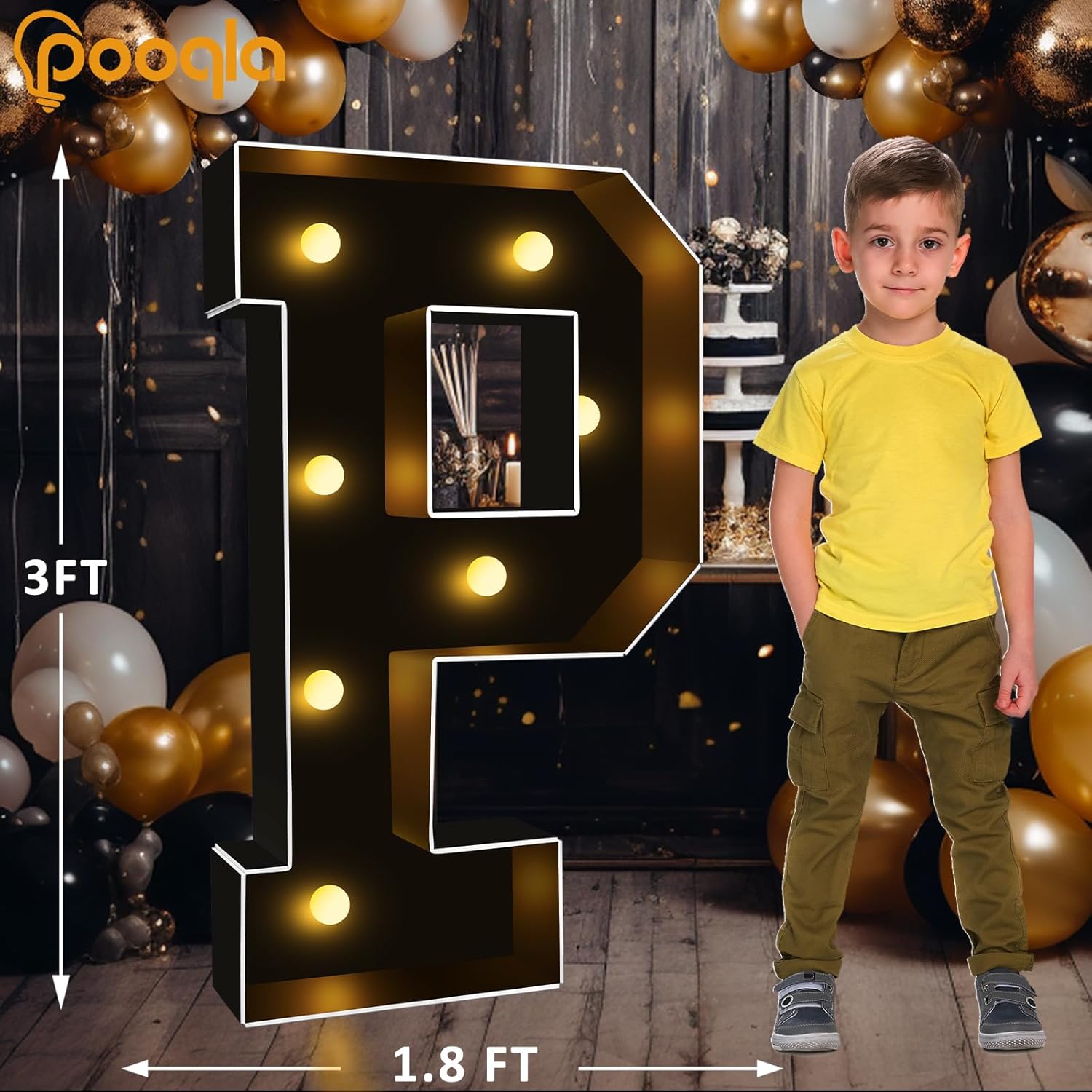 Pooqla 3FT Marquee Light Up Letters, Black LED Party Decor Large Marquee Letters 3 Feet Tall, Giant Mosaic Letter for Birthday Graduation Anniversary Wedding Decoration, Letter P