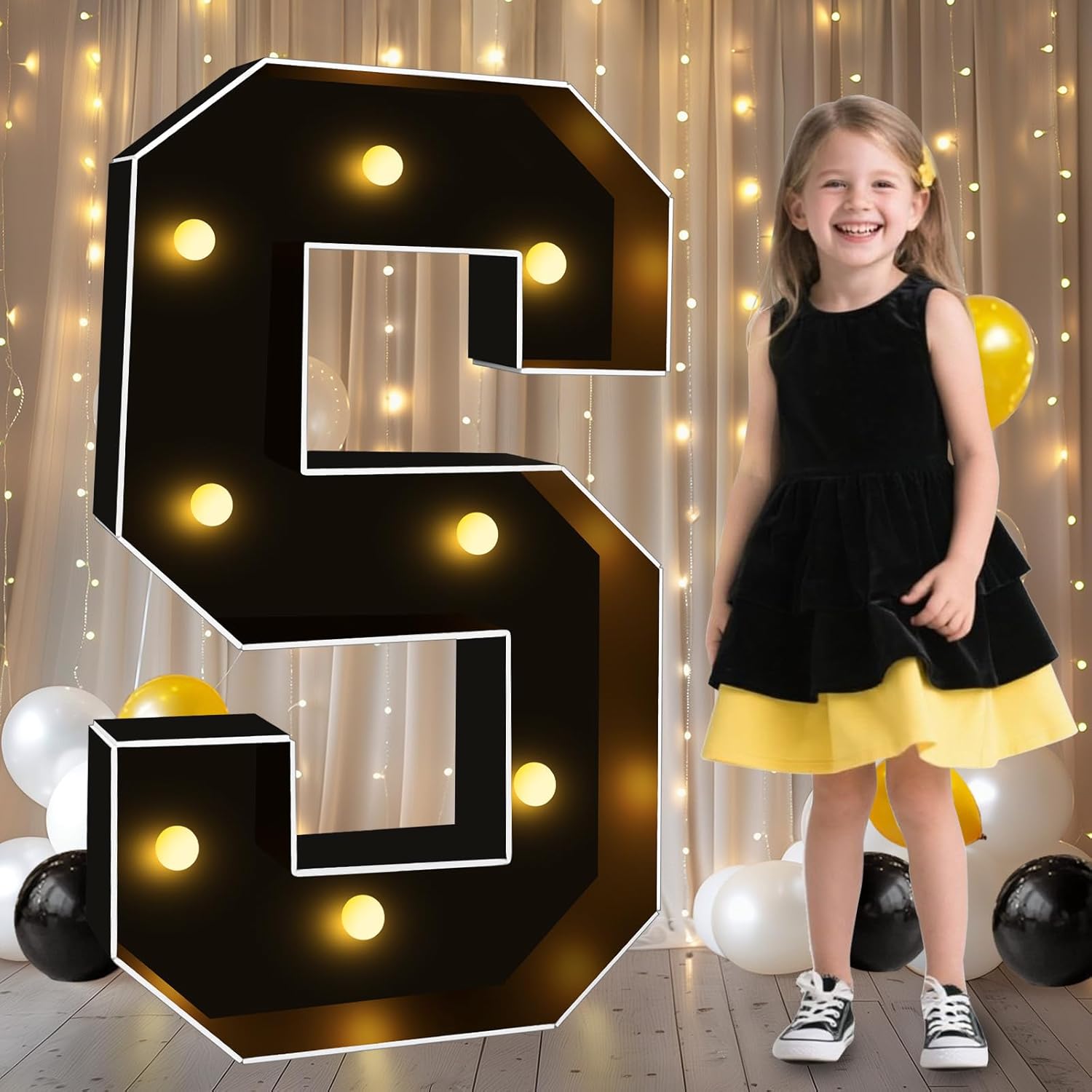 • Giant 3 Feet Marquee Letters with LED Lights: Mosaic letters designed with warm white LED string lights. Giant LED letters can be powered by 3 AA batteries (Not Included) or USB, convenient for black party decoration