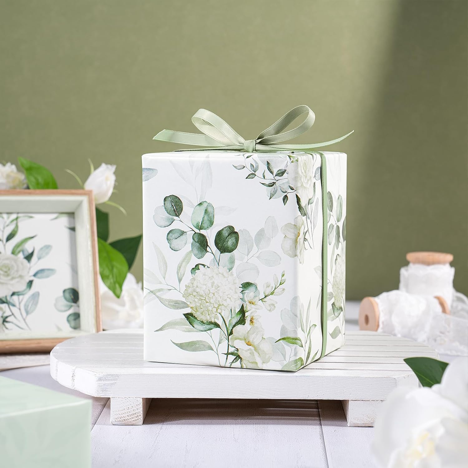 • Elegant Reversible Design: This double-sided wrapping paper features a delicate floral greenery pattern on one side and a sophisticated sage green solid color on the other, offering two beautiful styles in one roll for versatile gift wrapping