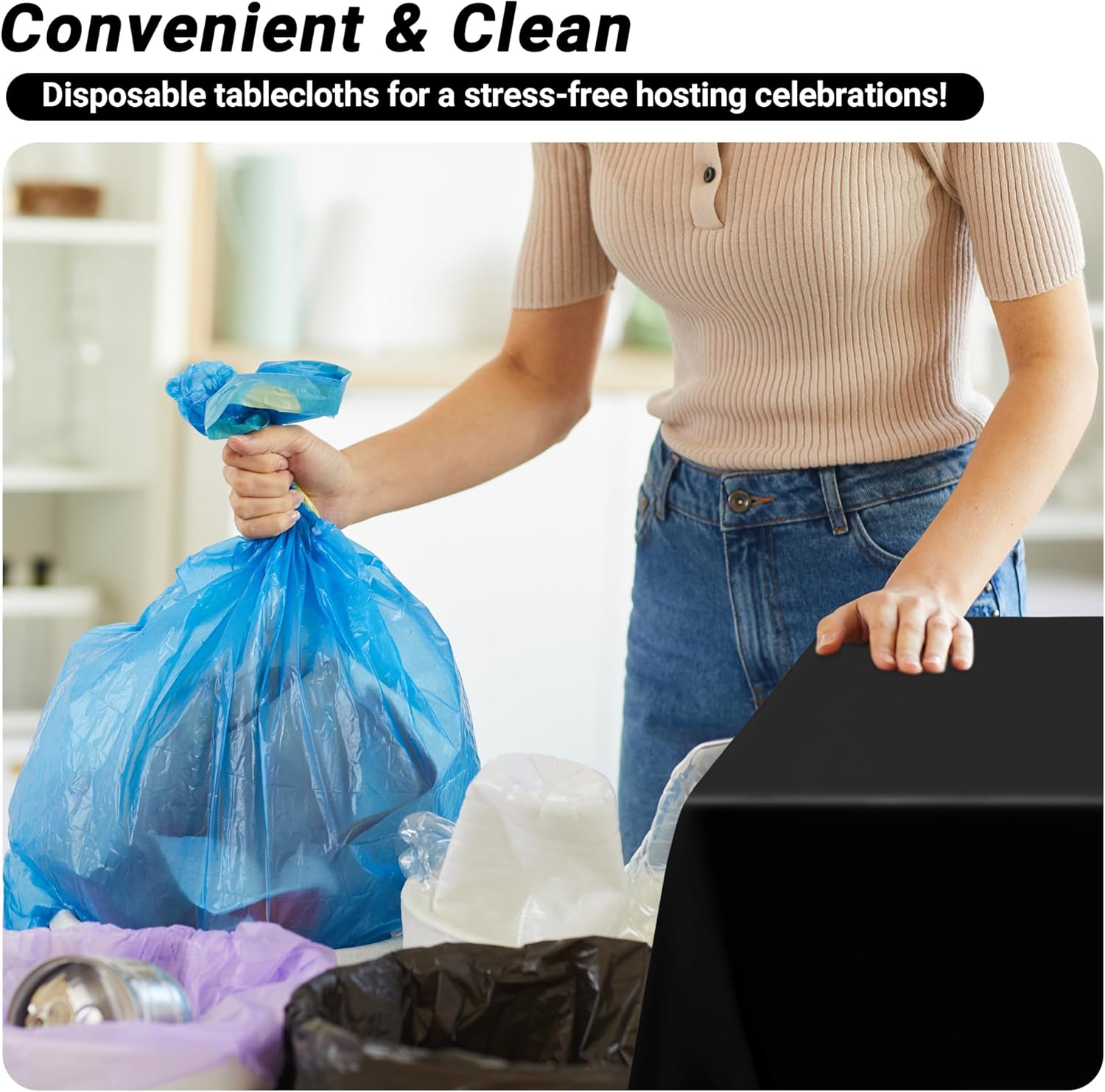 • Functionality and Convenience: Waterproof, sturdy plastic tablecloths protect against spills. Easy cleanup - just roll up and discard. Set of 12 covers multiple tables or future events, perfect for any occasion.