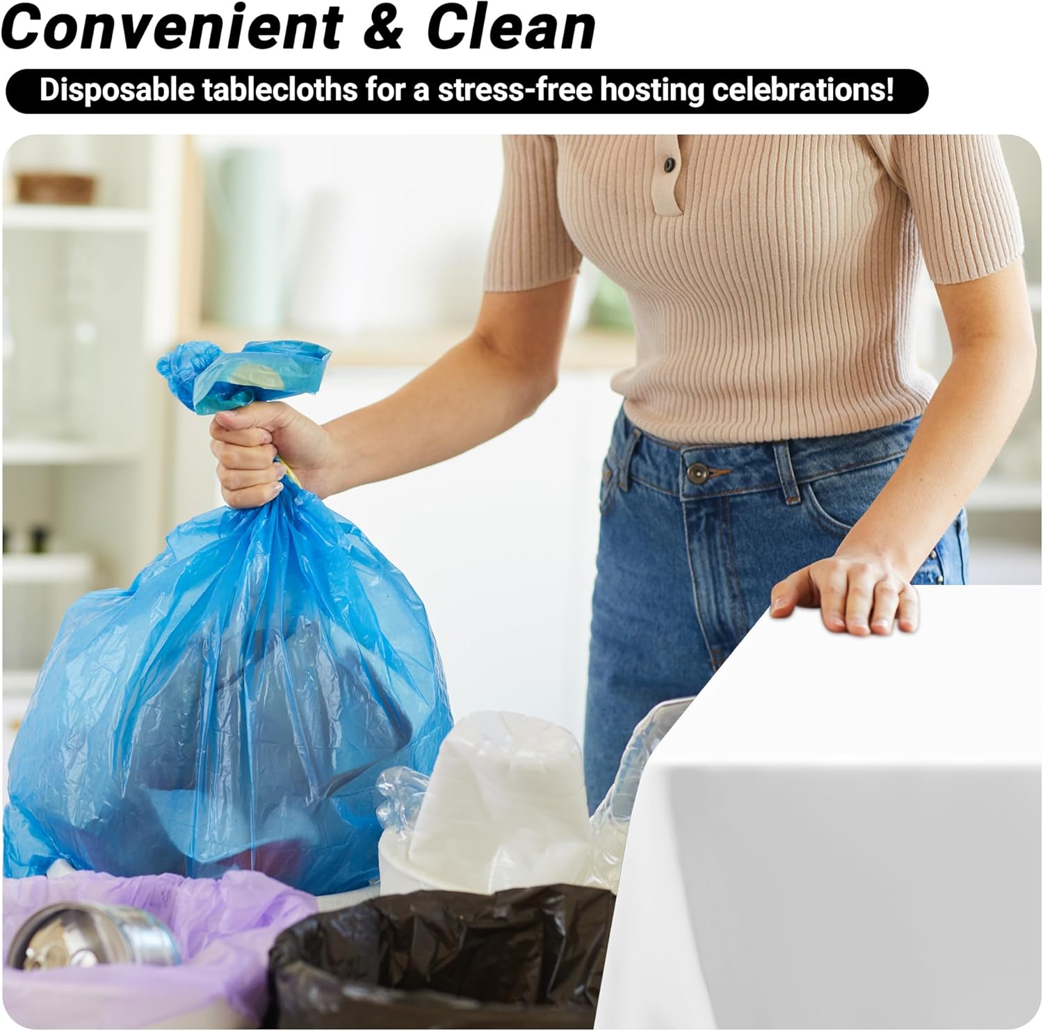 • Easy Clean Up: Our 4-packs plastic table cloth saves time on cleaning, allowing for quick and easy cleanup after parties, and can be directly thrown disposable table covers into the trash.