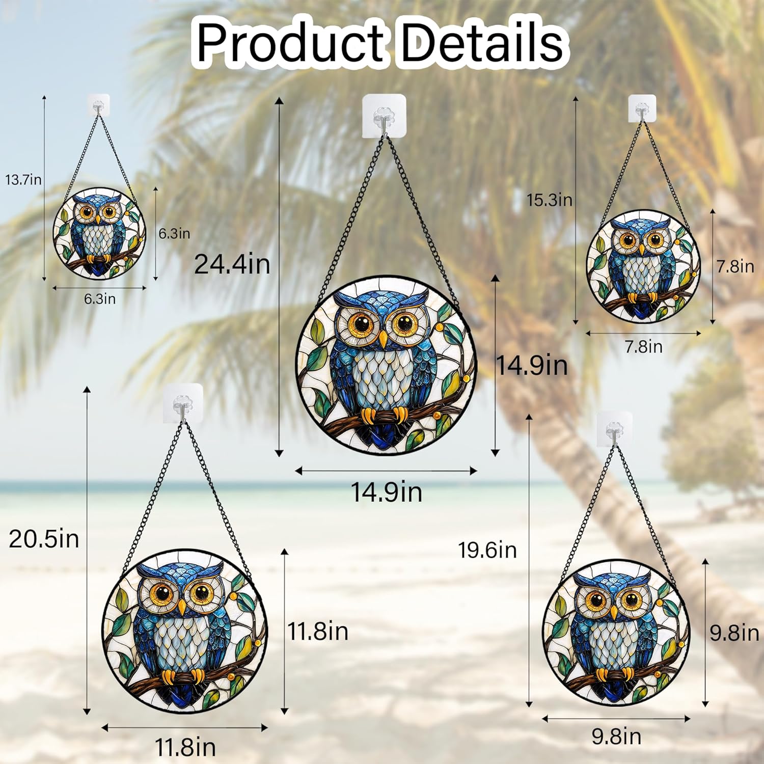 Stained Glass Window Hanging, Owl Gifts for Women Sun Catchers Diamond Glass Panel Hangings Birds Suncatcher Decor for Birthday for Women, Men, Wife, Aunt, and Mom 14.9x14.9 in