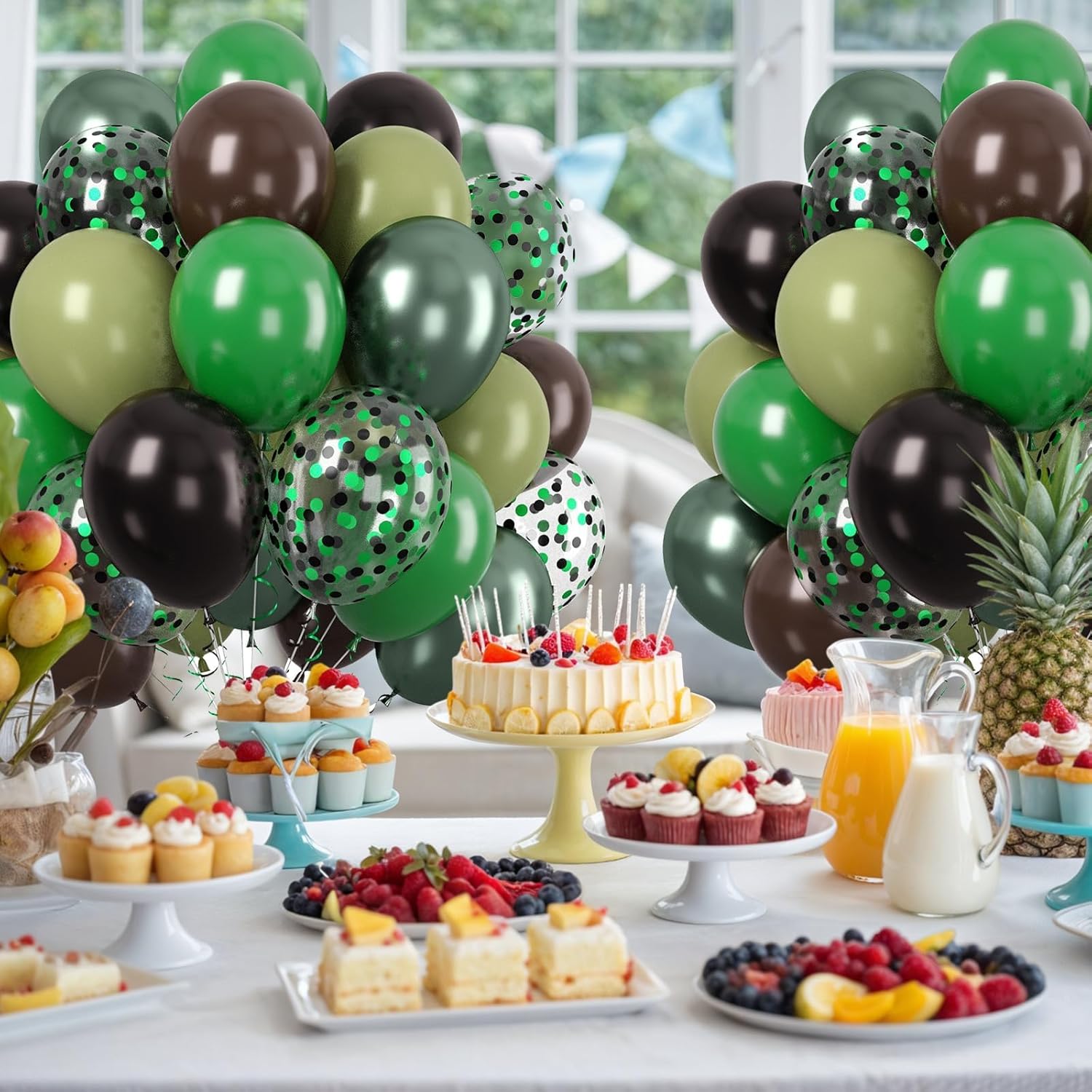 Paready Dark Green and Brown Balloons Set, 50 Pcs Metallic Green Brown Black Balloon, 12 Inch Sage Green Confetti Party Balloons for Kid Boys Camouflage Army Camping Camo Theme Party Birthday Supplies