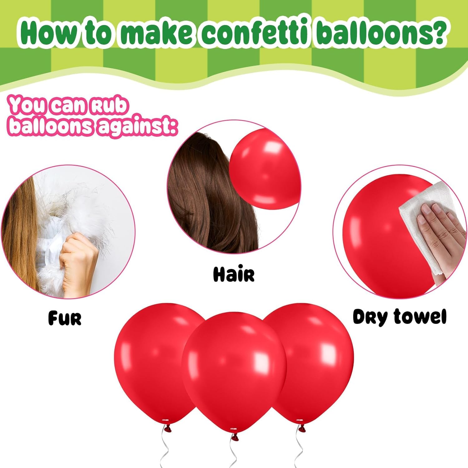 • 【EFFORTLESS SET UP】Assembly is simple—enjoy the fun of DIY! For helium inflation, tie the balloons with the included ribbons for a polished look. To make confetti balloons stand out, gently rub the balloon on fabric to create static, which helps the confetti stick evenly. These balloons can be placed anywhere—trees, walls, windows, or doorways—to create a festive atmosphere. They can also be paired with other colors to fit different party themes, making decorating a breeze.