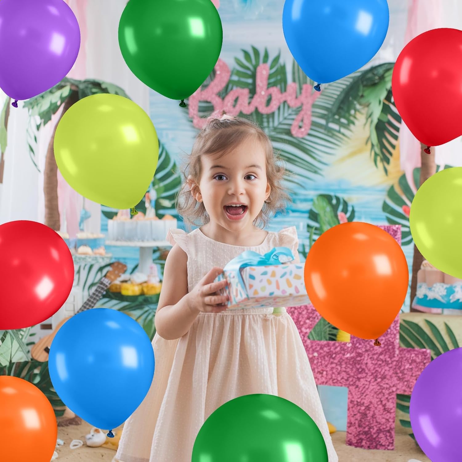 • 【WHAT YOU WILL GET】Our Green Purple Birthday Party Balloons include 50pcs latex balloons, designed to help you create stunning decoration: 8 x dark green balloons, 8 x fruit green balloons, 8 x orange balloons, 8 x red balloons, 8 x purple balloons, 8 x dark blue balloons, 2 x white ribbon. The size of the balloon is about 12 inches after inflation.