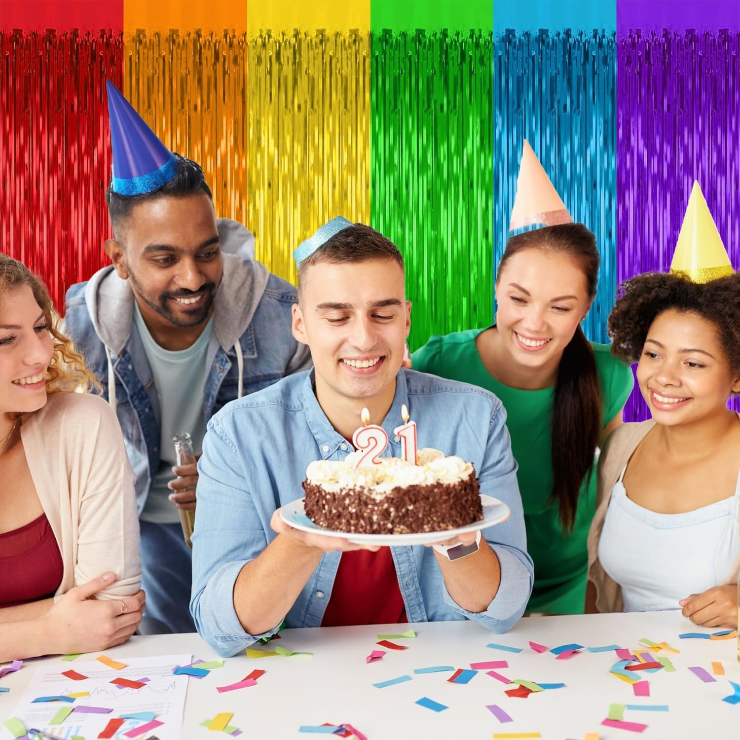 • Rainbow Party Decorations: 1 pack of red orange yellow,and 1 pack of green blue purple foil fringe curtains,Extra large size (width x drop) 3.28 Ft x 6.56 Ft,perfect for rainbow birthday party decorations.