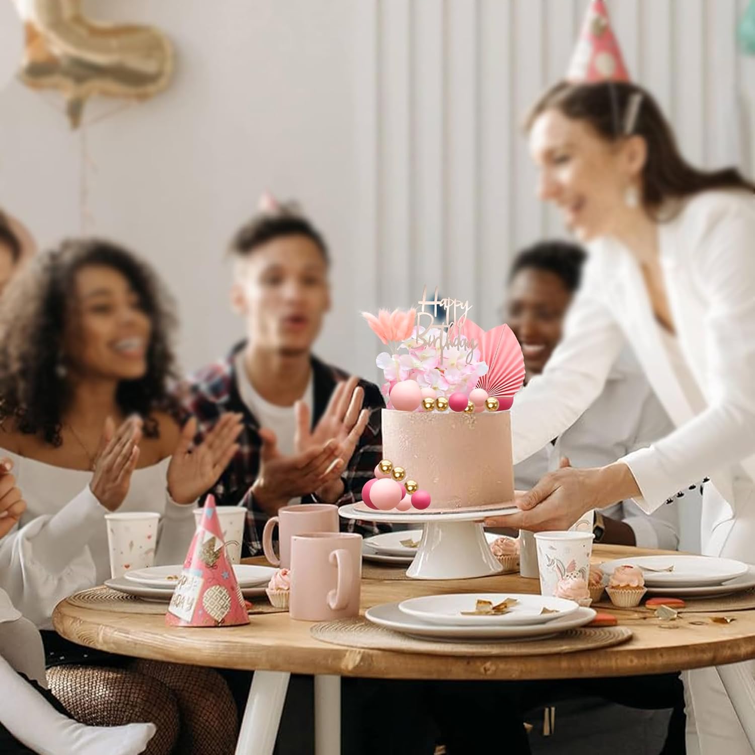 • -Package included: 2Pcs Fans + 2Pcs Artificial Flower + 1Pcs Happy Birthday Cake Topper + 5Pcs Leaves Cake Toppers + 19Pcs Balls. These Rose Red Artificial Flower Cake Toppers are so chic and funny that make your Bridal Shower theme party a big hit.