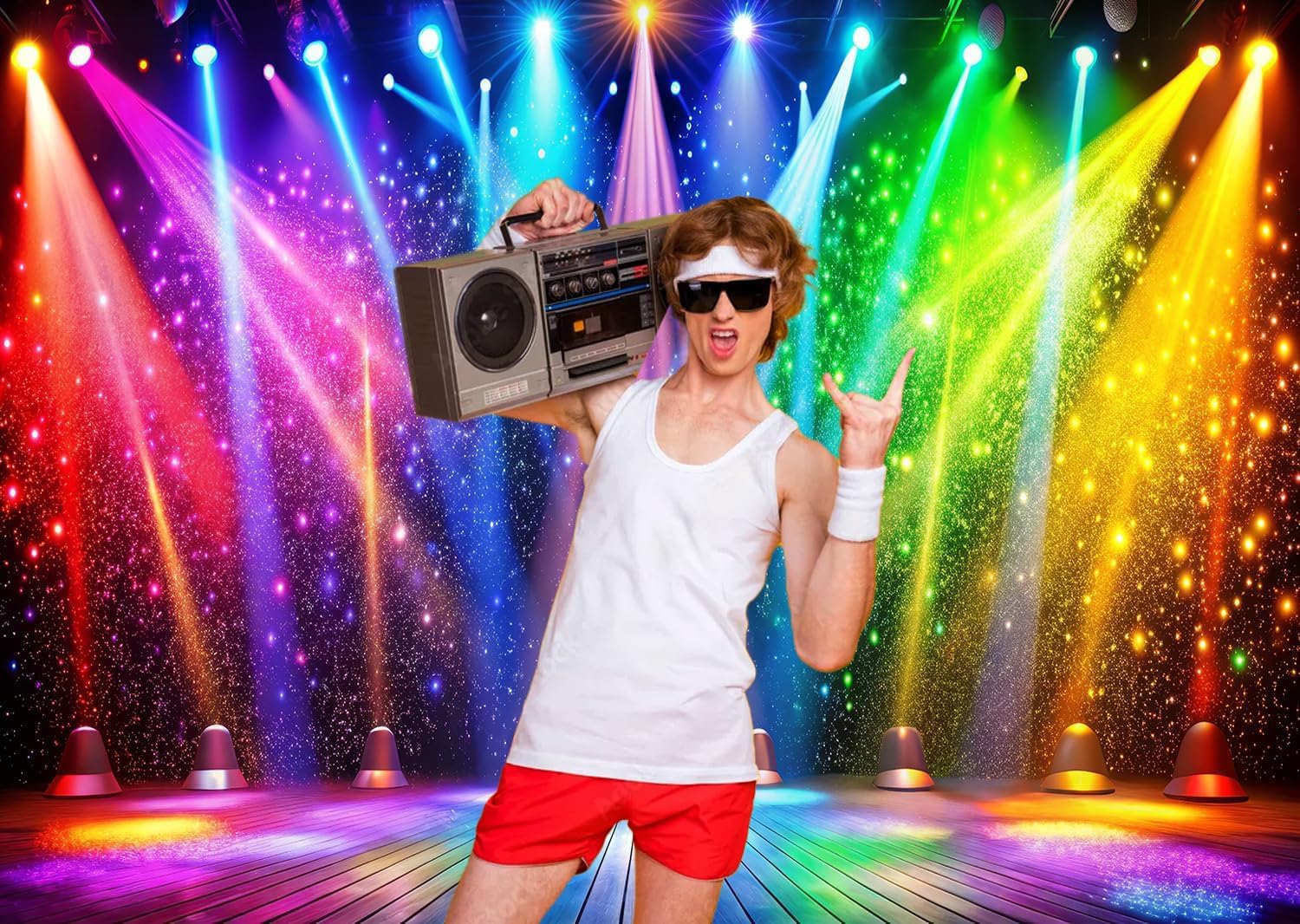 • πŸŽ‰ Vibrant Rainbow Light Design – Featuring a dazzling array of rainbow spotlights and glitter effects, this backdrop instantly creates a festive atmosphere for parties, concerts, or photoshoots.