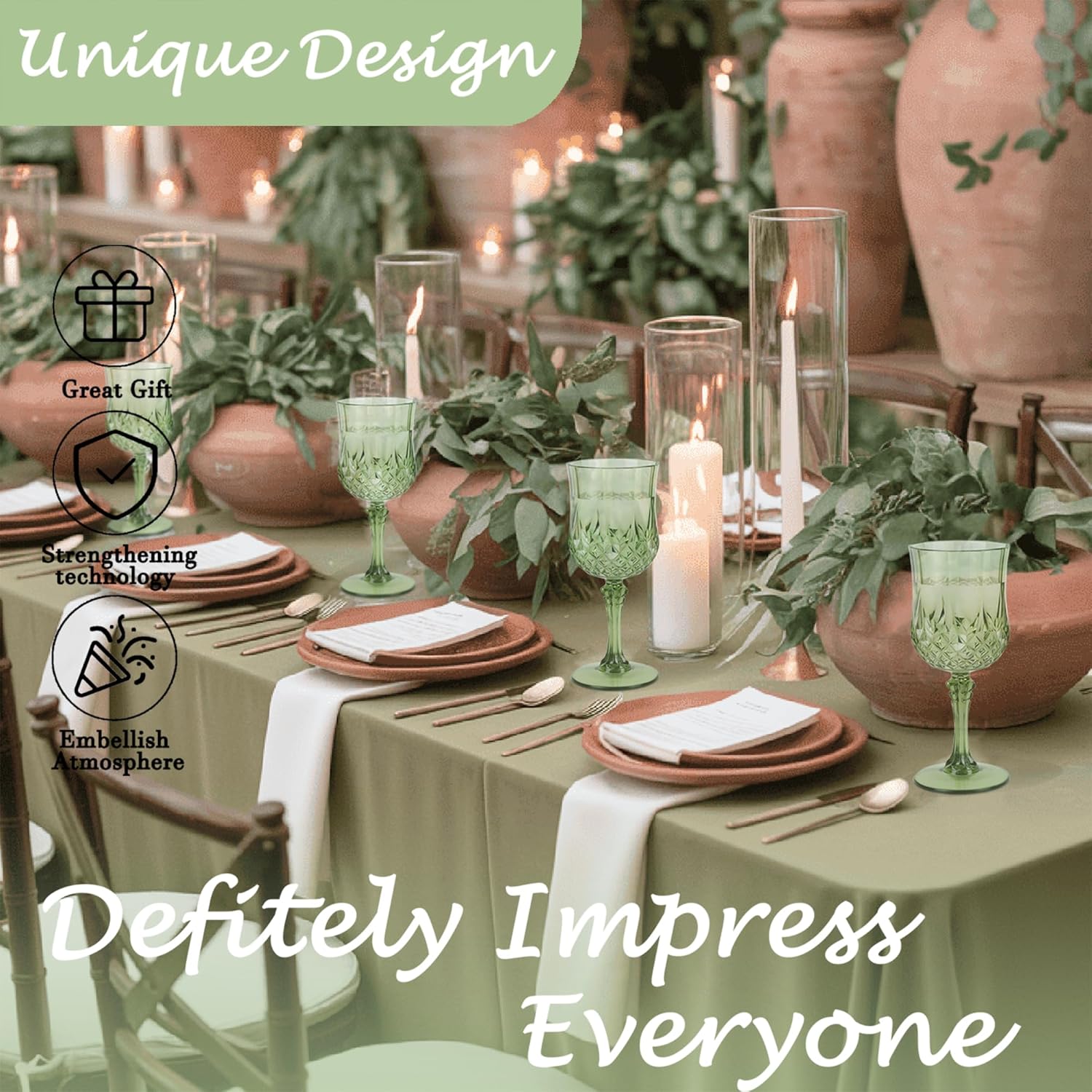 • 🍷🍷🍷【Product Description】 This set includes 48 retro-style light green party plastic wine glasses, providing ample quantity to meet your daily use and replacement needs. The elegant and sophisticated design makes your wedding reception unique.