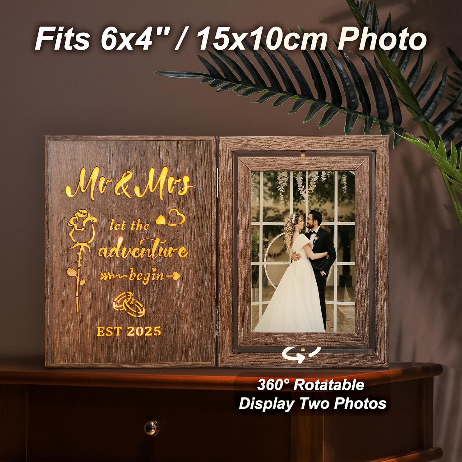 Light Up Wedding Photo Frame Gifts for Couples 2025 - Rotating Glowing Picture Frame Mr and Mrs Bridal Shower Gifts for the Bride Newly Wed Couple - Vintage Decor Holds 2 4x6 Photos
