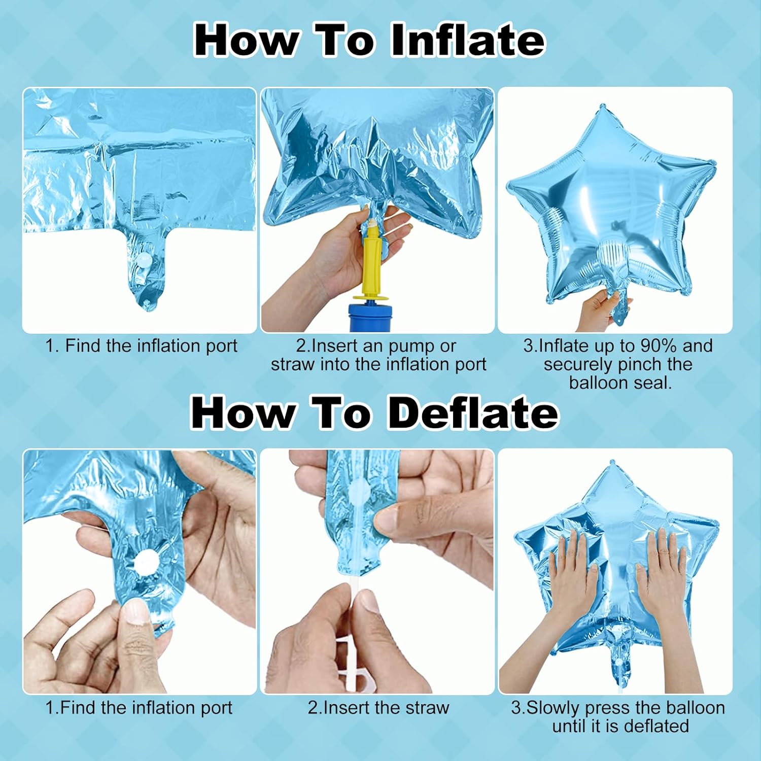 • 💝♻️【Rich & Reusable 18" Foil Balloons】: The rich foil balloons enhance the design sense of the decoration. They can be reused according to the instructions, bring a festive and fun atmosphere to any occasion, time and time again! 🎈🎉(Please place the hand pump under the transparent protective film at the balloon inflation port to inflate. After the activity, insert the attached straw under the protective film and gently press to deflate it for reuse.)