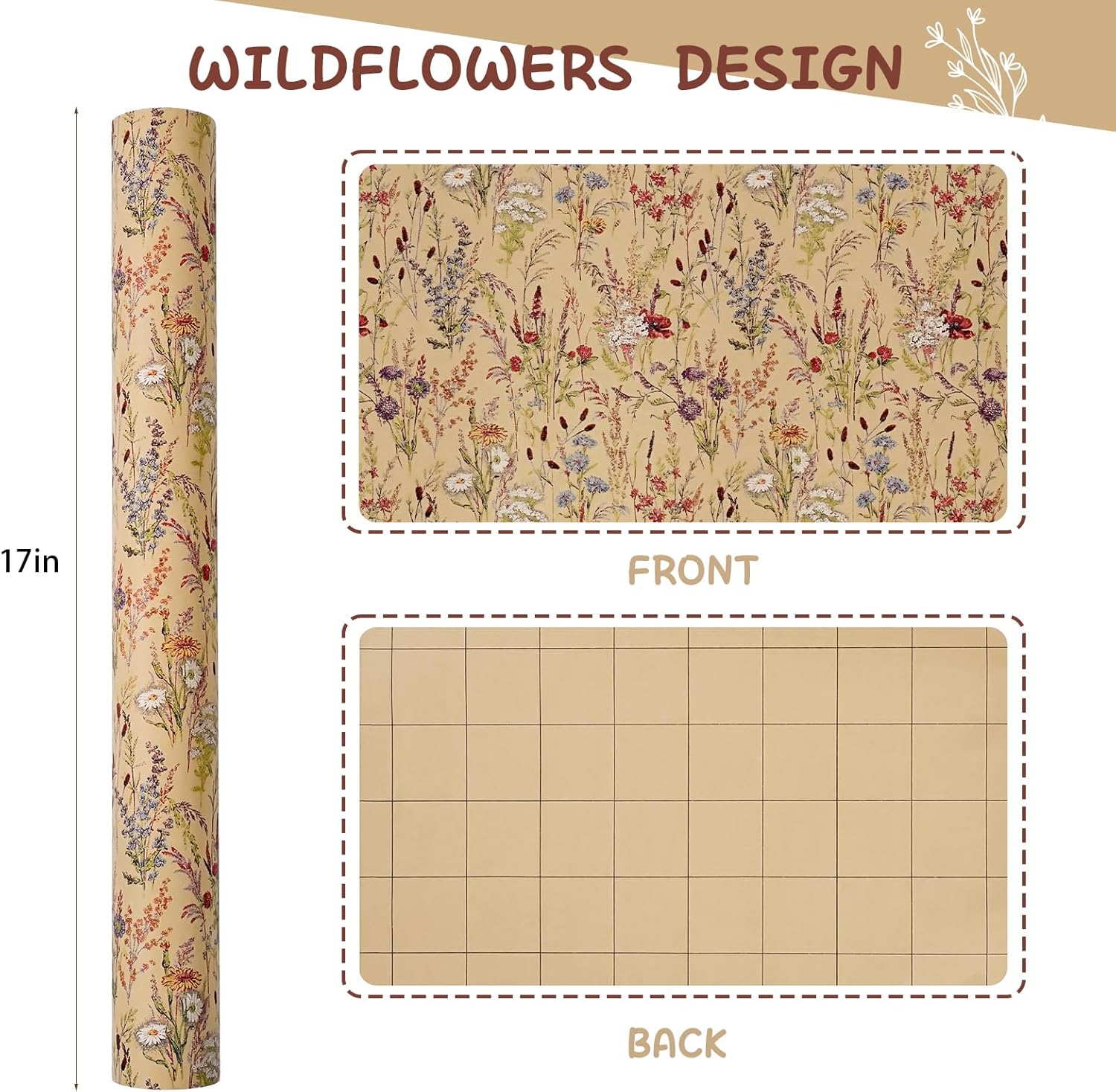 • FLORAL PATTERN WRAPPING PAPER ROLL: Elevate your gifts with our charming wild flower wrapping paper, Each design features a whimsical arrangement of delicate blooms in soft, nature-inspired hues, bringing a touch of rustic elegance to every present.