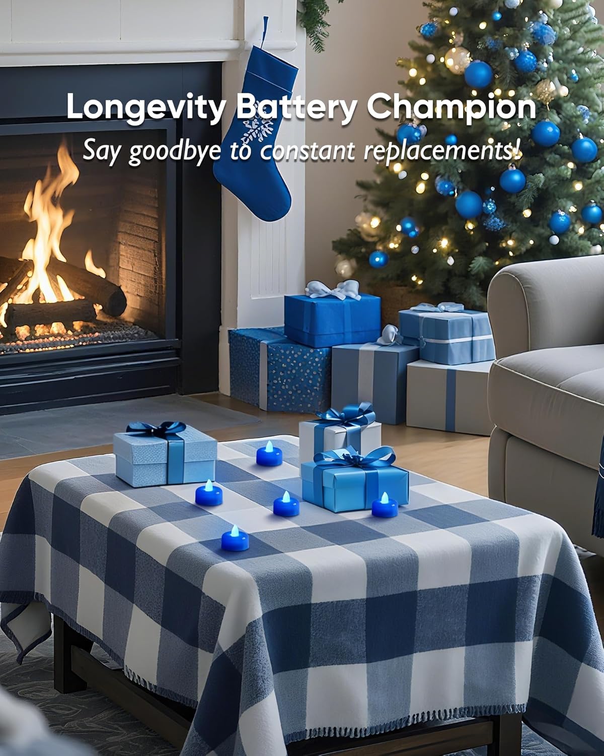 • Create Atmosphere: Create a magical atmosphere with our blue flameless candles! The charming tea lights add a touch of mystery to your party or holiday gathering. Enjoy the realistic wax-like appearance and feel that will leave you amazed