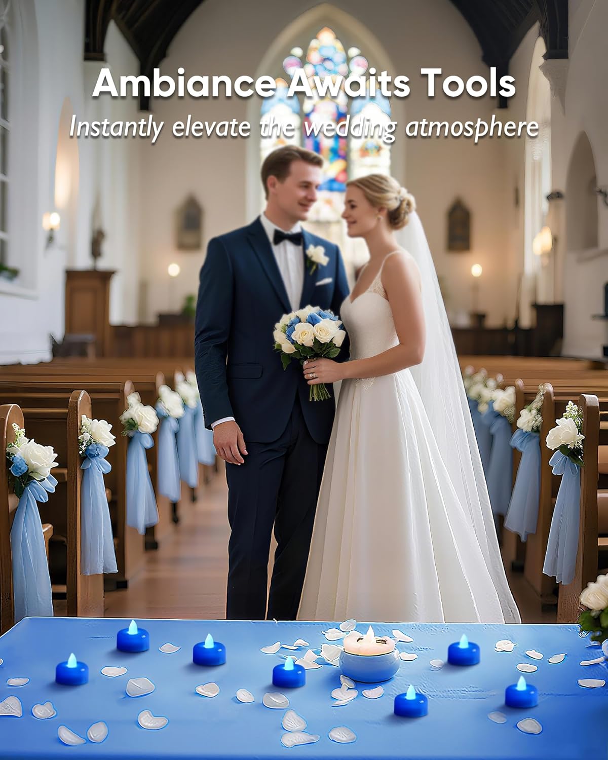 Amagic 24 Pack Blue Flameless LED Tea Lights Candles Battery Operated, Electric Fake Tealight Candles for Wedding, Table Centerpiece, Home Decor, Gift, Party, Halloween, Christmas, Proposal