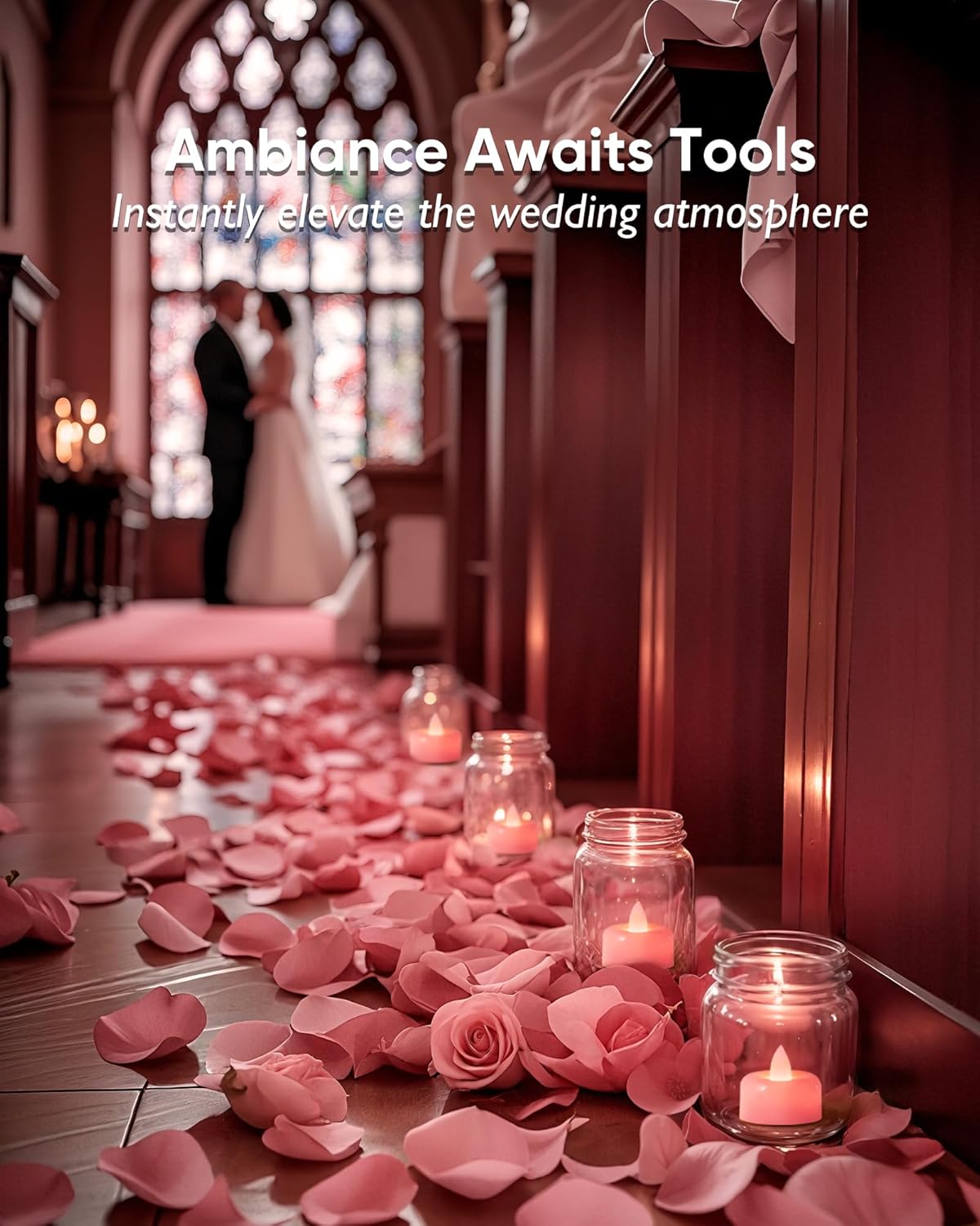 • Pink LED Tea Candles: These enchanting electronic tea lights emit a warm, bright pink glow, effortlessly transforming any space into a romantic haven. Their realistic wax appearance and touch will leave you amazed