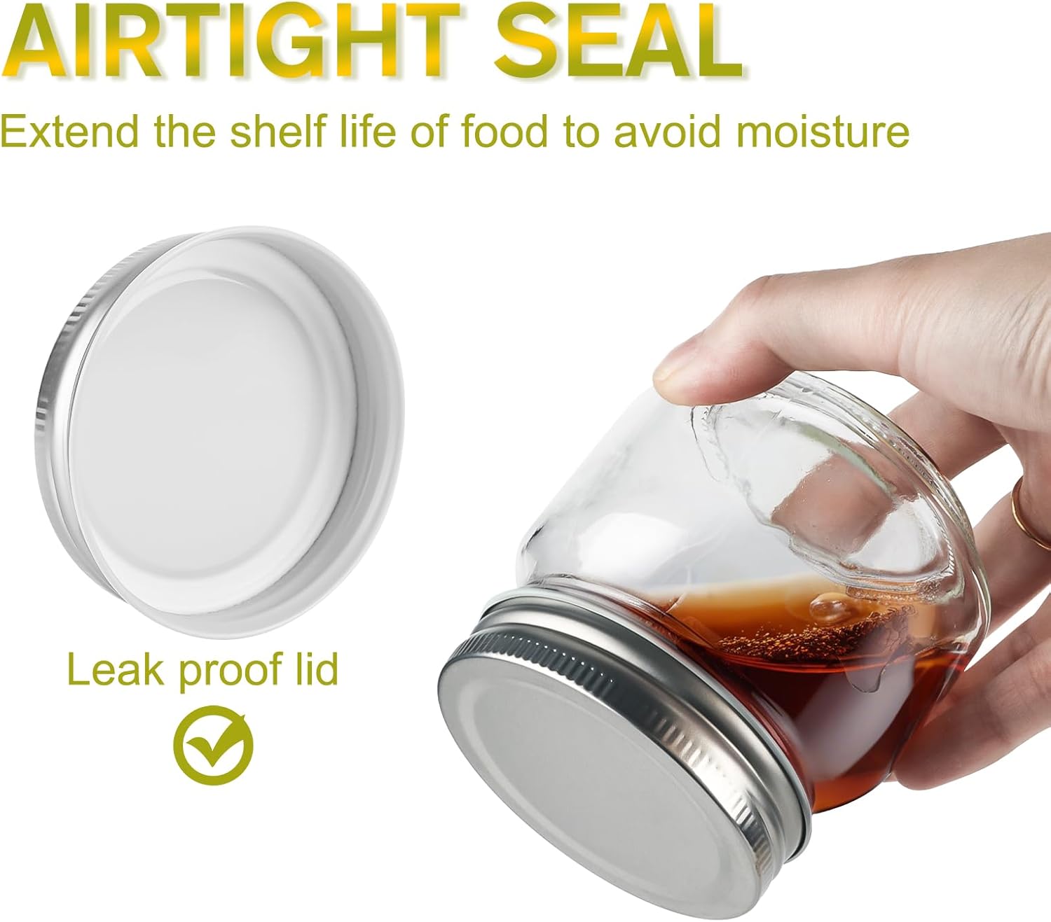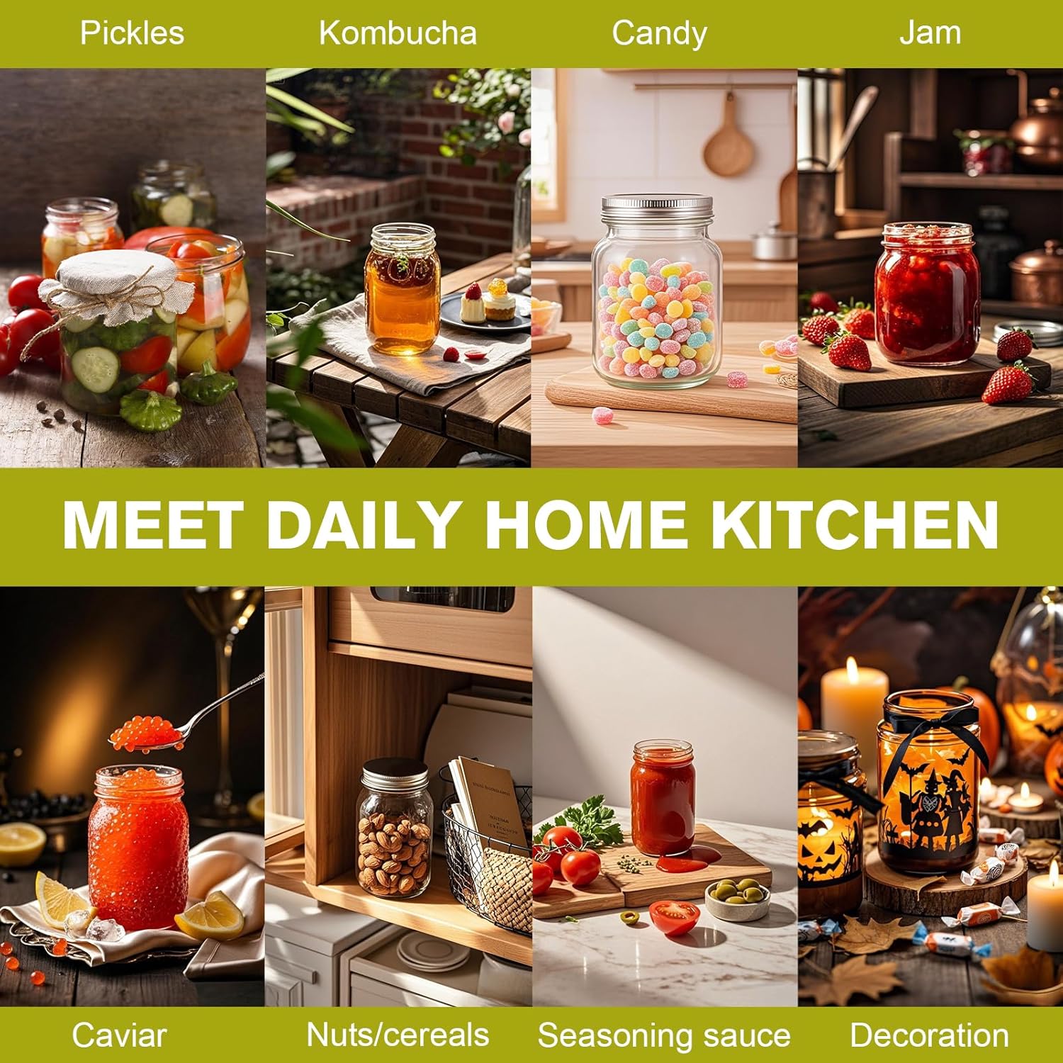 • Sealed and Leak-proof: Each jar comes with a time-tested sealing ceiling compound that ensures the sealing quality of each lid, making it perfect for preserving and canning. Safe for the refrigerator and freezer. Wide mouth is easy to grip and clean, suitable for storing food, convenient for our daily life.