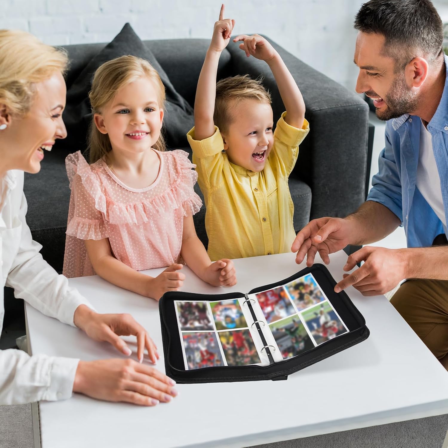 • Large Capacity Size: Inside page size: 2.68*3.5in,The card binder comes with 50 removable sleeves, which can hold up to 400 trading cards with 4 pockets on each side, allowing you to store cards on both the front and back.The trading card binder case is compatible with svarious standard-sized cards, Game Card , Football cards, Baseball cards