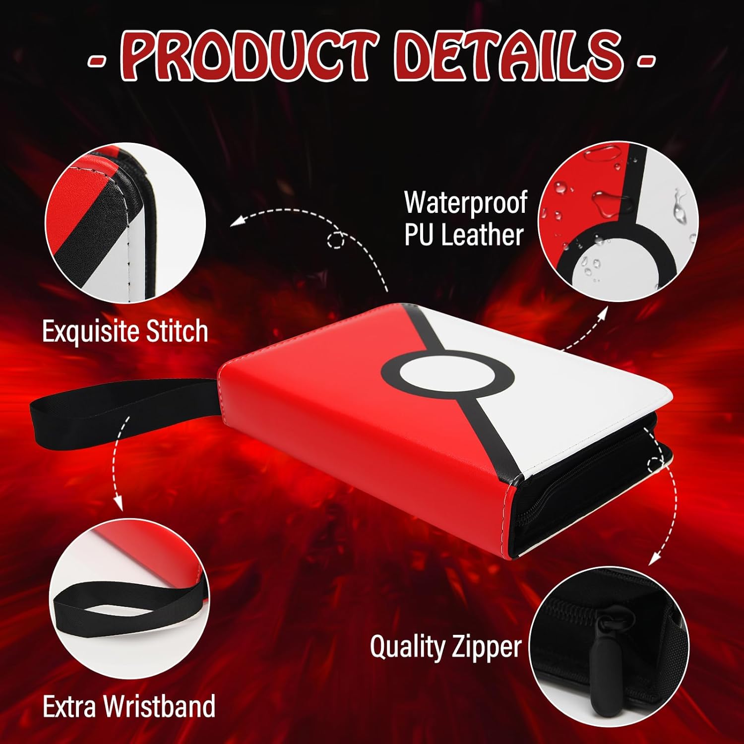 Madrigal Trading Card Binder 4 Pocket,400 Pockets Card Holder with 50 Removable Sleeves,Trading Card Albums for Game Cards,Premium Card Book, Game Cards & Sports Cards Red/White