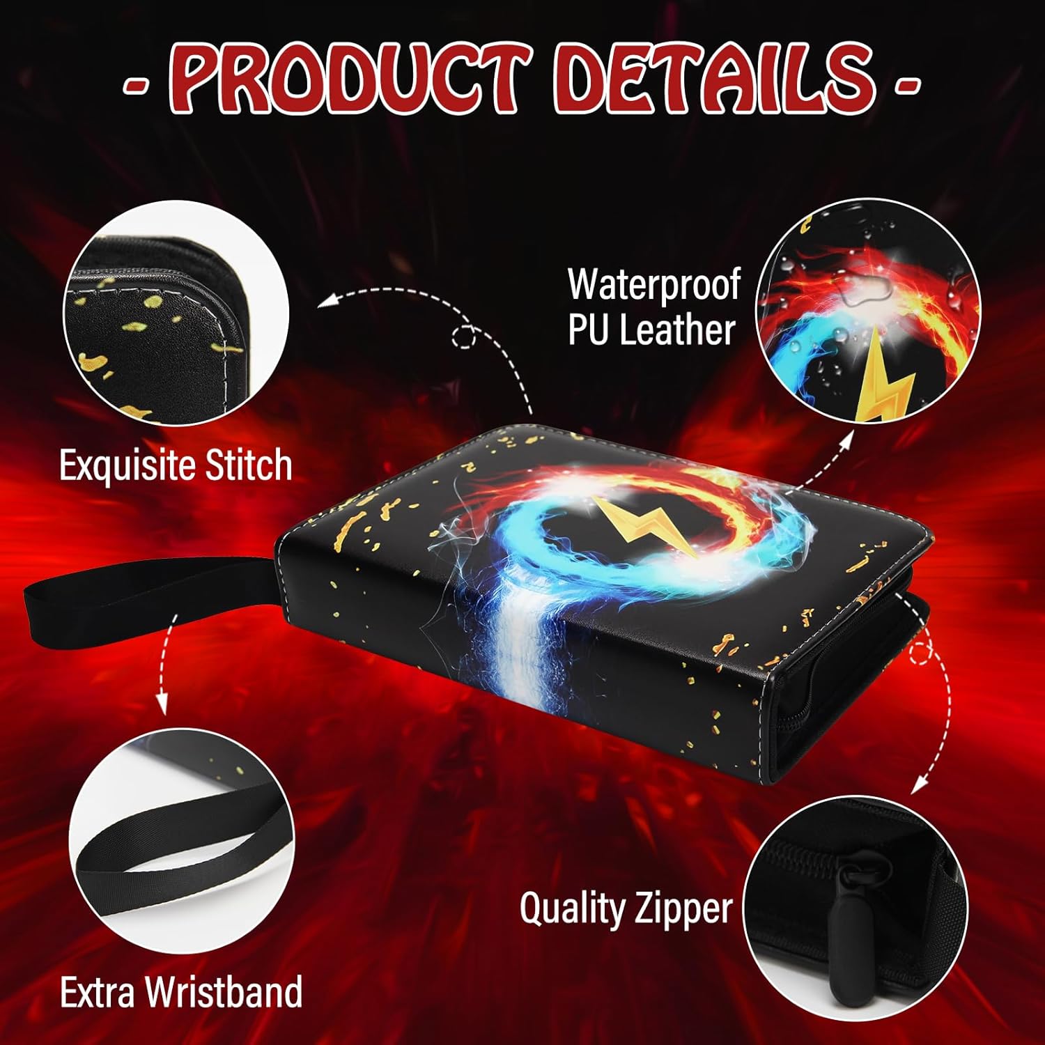 • Premium Material:Crafted from waterproof PU leather, our card binder boasts superior shock, dust-proof, and moisture resistance. Inside page Made of durable and transparent materials, it not only protects cards from damage but also displays them clearly,The binder with top-notch zipper seal secures your cards, and the added wristband design ensures convenient portability wherever you go
