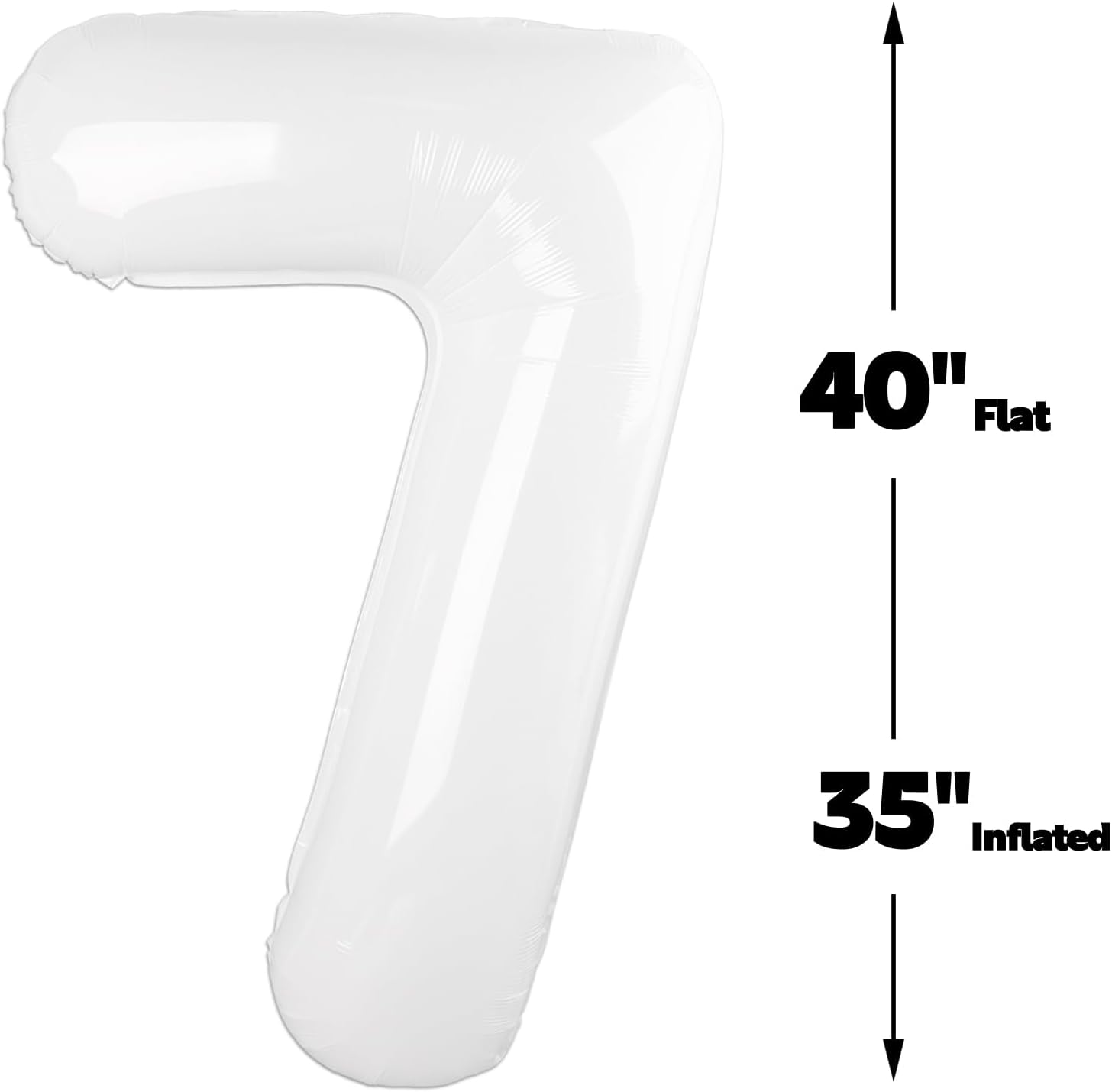 Digital Number 7 White Birthday Balloon 40 Inch, Foil Balloons for 7 17 27 70 77 Party Decorations Supplies, White Mylar Numbers Balloon for Seven Wedding Anniversary