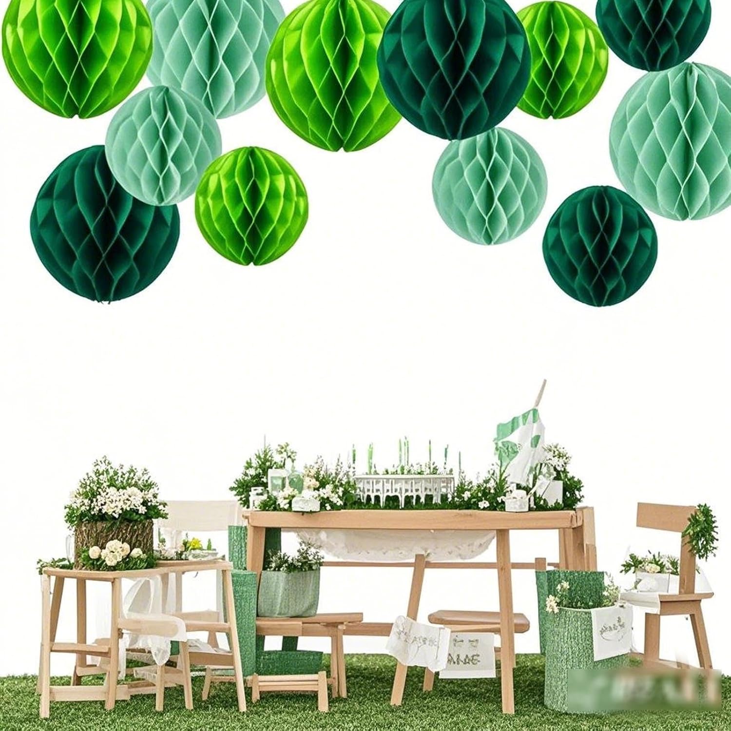 • Includes Paper Honeycomb Balls in 3 colors:fruit green, dark green, mint green.Each color comes in 2 sizes: 6 inches and 10 inches