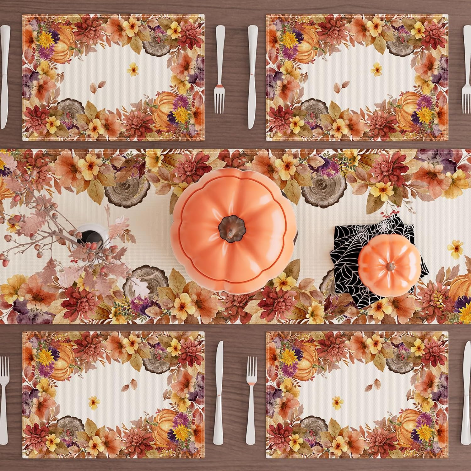 XCHI Fall Color Wild Flowers Watercolor Placemats Set of 4 for Party Home Kitchen Dining Table Decorations Table Mats 12x18 Inch