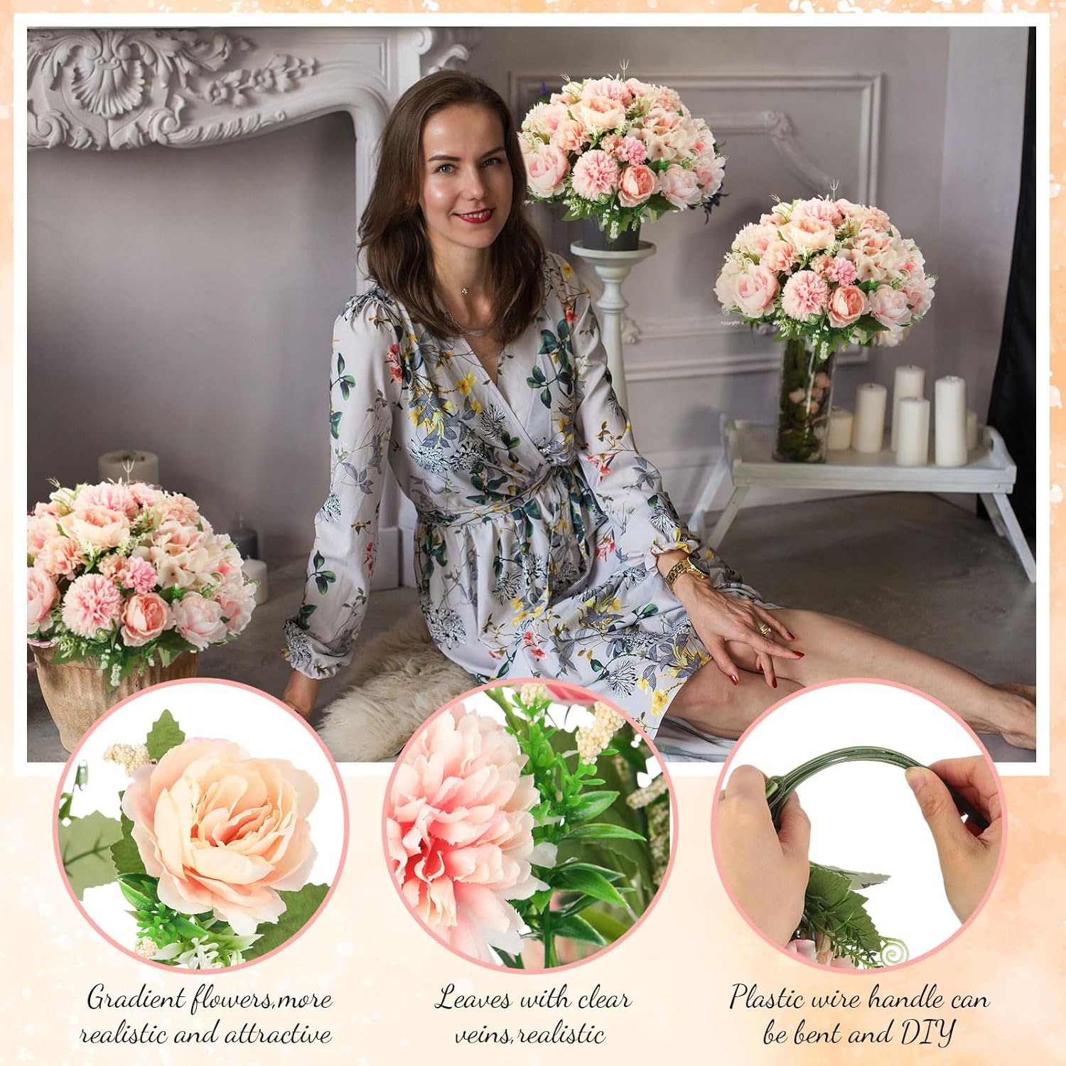 • Attractive Appearance: the fake flowers bouquet is shaped with pink peonies, embellished with green leaves, vivid and beautiful, designed with 7 flower heads as a bundle, including hydrangea, peony and more, bushy and vibrant, which will be favored by most people