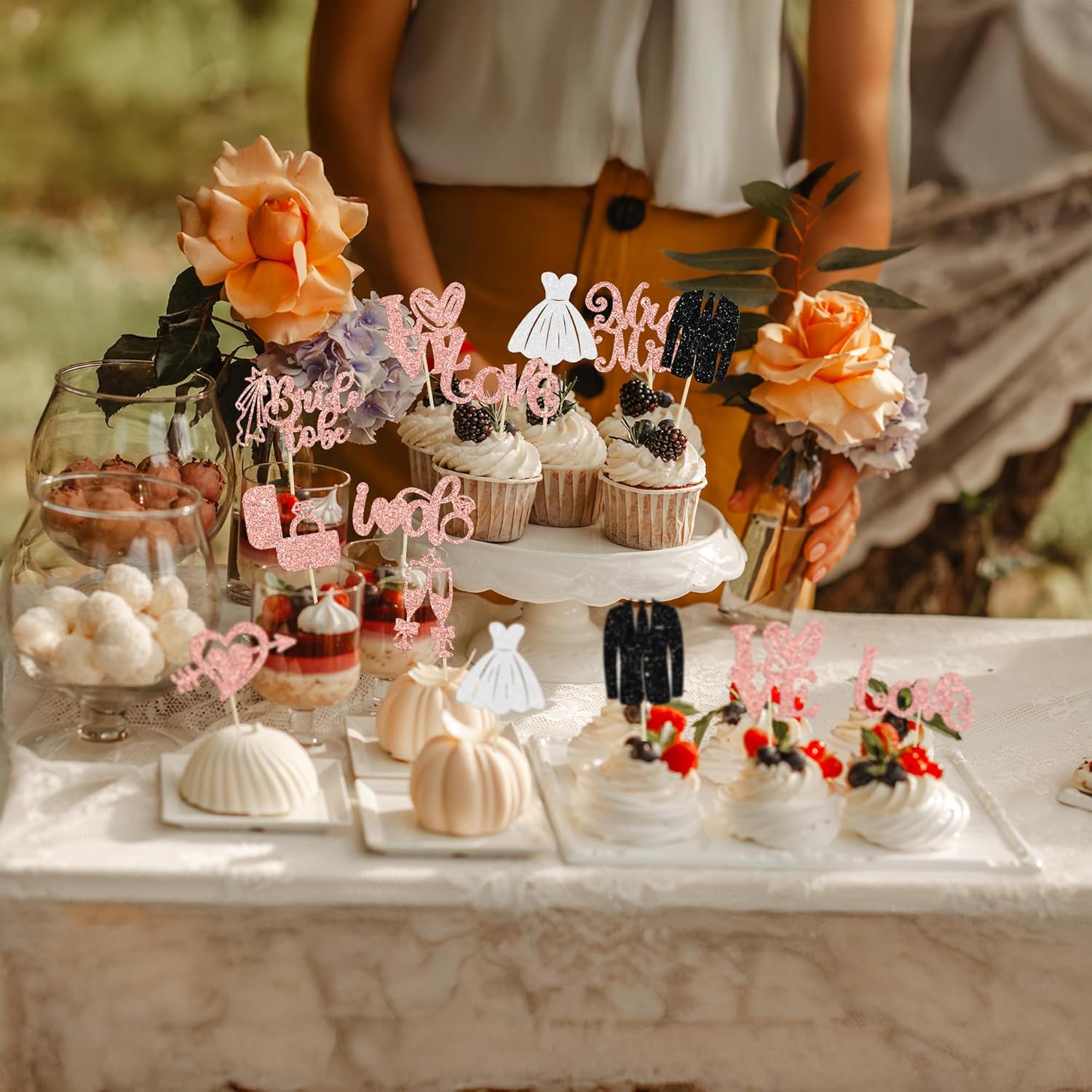 Ephlyn 30Pcs Bride to be Cupcake Toppers Glitter Wedding Cake Topper Decorations I Do Love Heart Ring Cupcake Picks for Bridal Shower Wedding Engagement Party Supplies Rose Gold