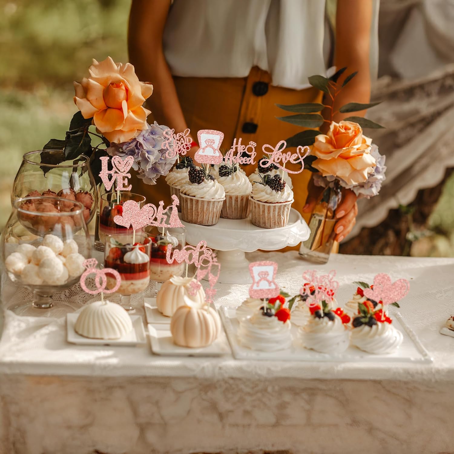 Ephlyn 30Pcs He Asked She Said Yes Cupcake Toppers Glitter Engagement Cupcake Toppers Diamond Ring Heart Love I Do Cupcake Picks for Engagement Wedding Party Cake Decorations Rose Gold