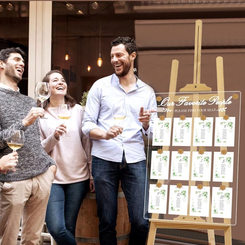 • Usage: ① Use with seat cards (not included) displayed on easels or tables; ② Hang on a sign display stand via the pre-drilled holes for enhanced visibility. If holes are undesirable, cover them with included eucalyptus sealant stickers or decorate with floral arrangements